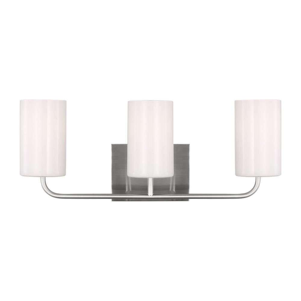 Introducing the Rhett 3 Light Large Bath Vanity, a stunning addition to your contemporary space. Designed in a modern style, this elegant fixture measures 8.88 inches tall and 22 inches wide, making it a perfect fit for any vanity. Crafted from durable steel, it features a unique armed design with hidden bulbs and shaded glass, ensuring a soft, inviting glow. Illuminate your bathroom with sophistication and style while enjoying the benefits of incandescent lighting.
