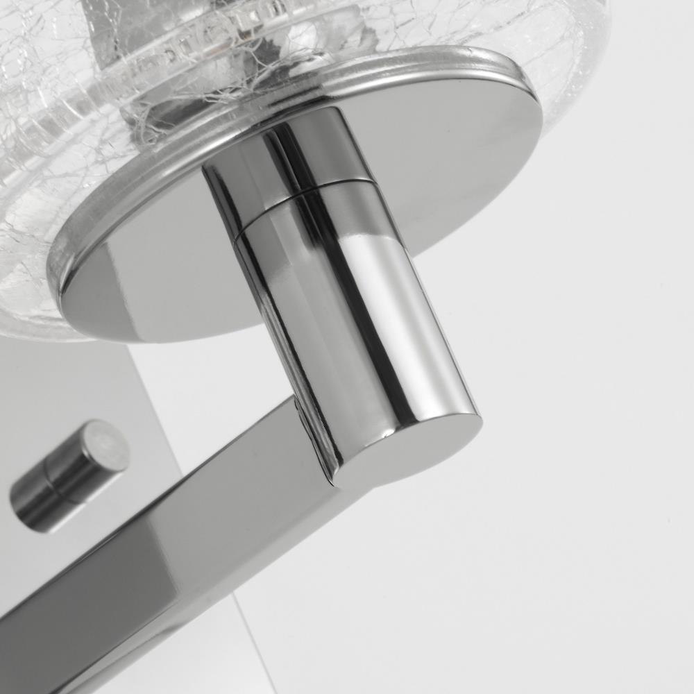 The Parker Vanity series is the perfect fusion of form and function. Its sleek design, crackle glass shade, and superior craftsmanship make it the perfect choice for any bathroom setting. Available in four finishes, Parker includes a rectangular backplate and a horizontal bar that connects to the lamp holders surrounded by a cylindrical clear crackle glass shade to bathe the room in an inviting, dimmable glow.