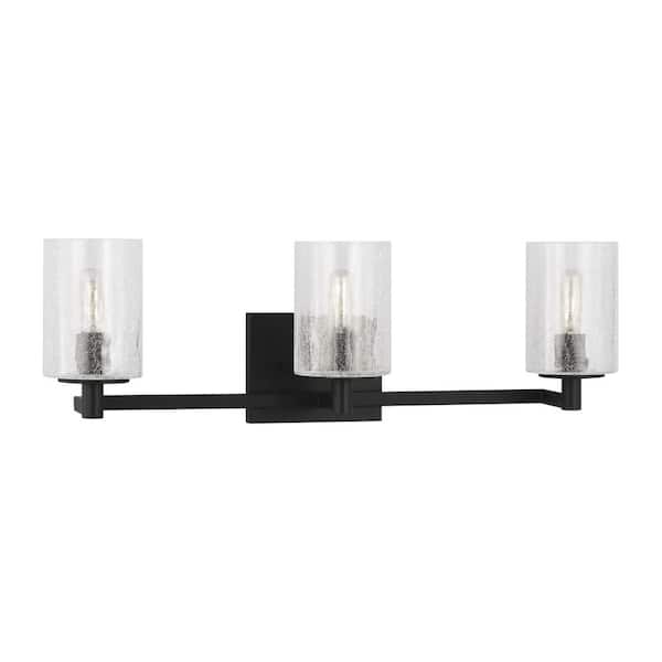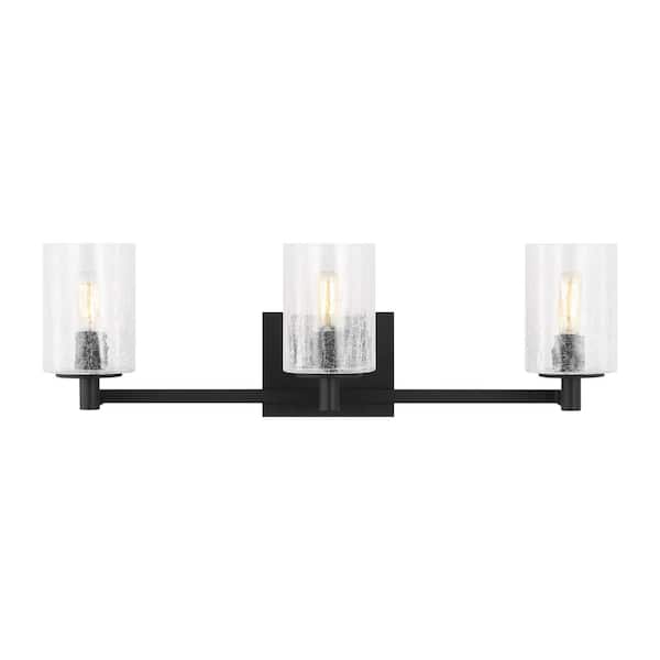 Parker 24.625 in. W 3-Light Midnight Black Bathroom Vanity Light with Clear Crackle Glass Shades and LED Bulbs Included