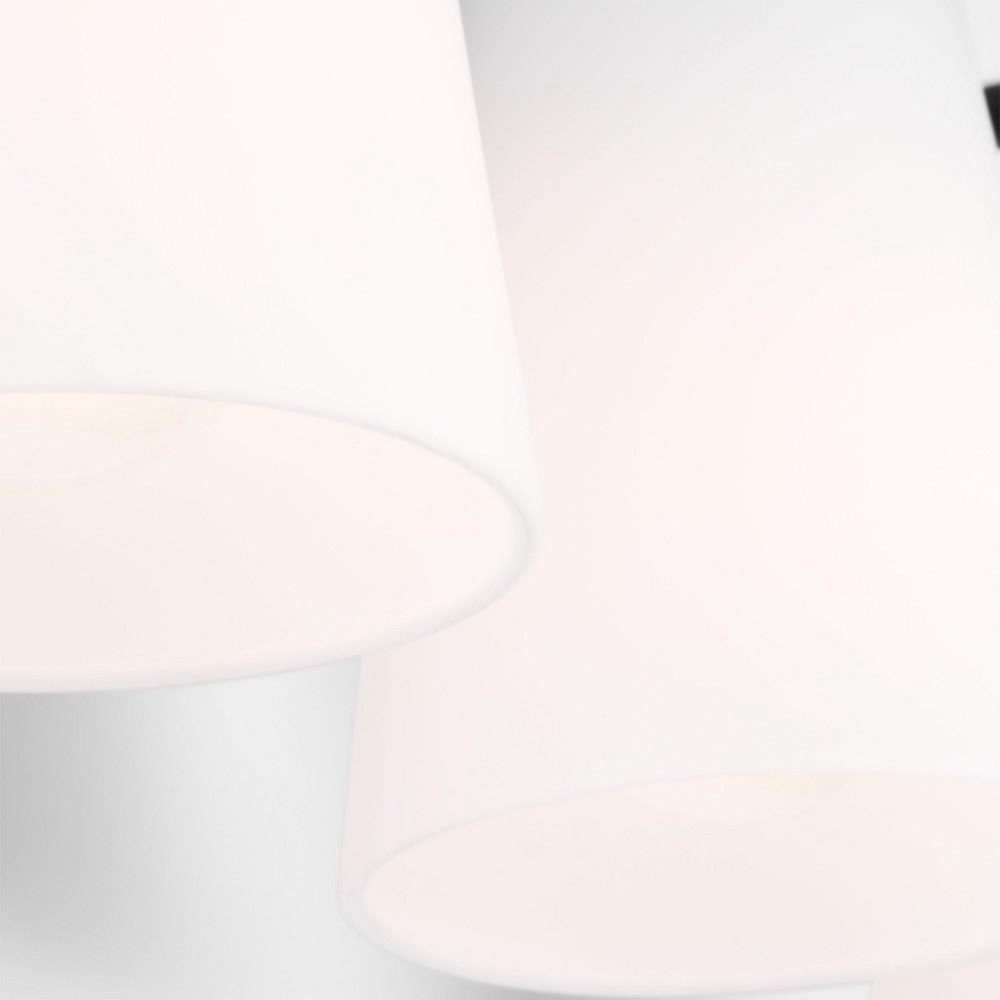 • Brushed Nickel finish with White Etched Glass Shades