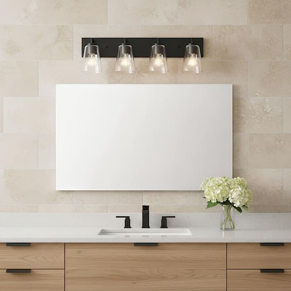 Miles 25 in. W x 8 in. H 4-Light Midnight Black Dimmable Extra Large Bathroom Vanity Light with No Bulbs Included