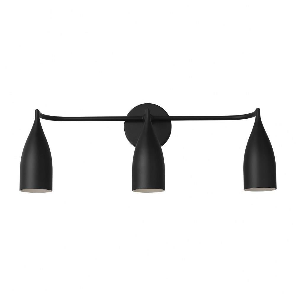 Maya merges modern design through an organic form, offering a playful silhouette. The metal shades cradle the exposed lamps and are integrated into the frame. Available in Matte White or Midnight Black; Maya offers chandeliers, sconces, and vanities.