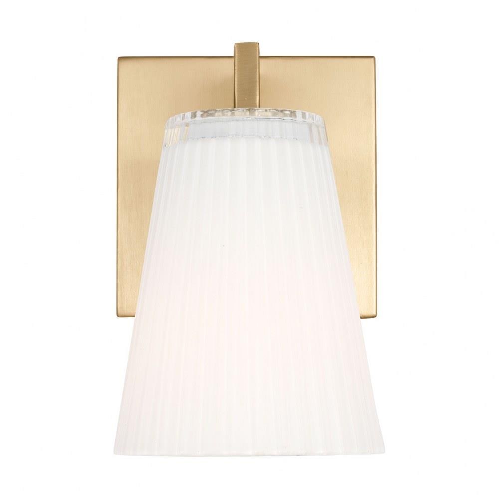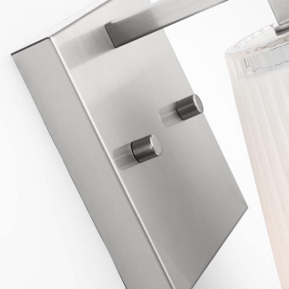 Upson features clear textured glass shades finished with a white interior that offers a soft layered glow. Available in Midnight Black, Satin Brass, Brushed Nickel, and Chrome. Upson offers flexibility in any application with one-light sconces, and two, three, and four-light vanities that are all available to be mounted up or down.
