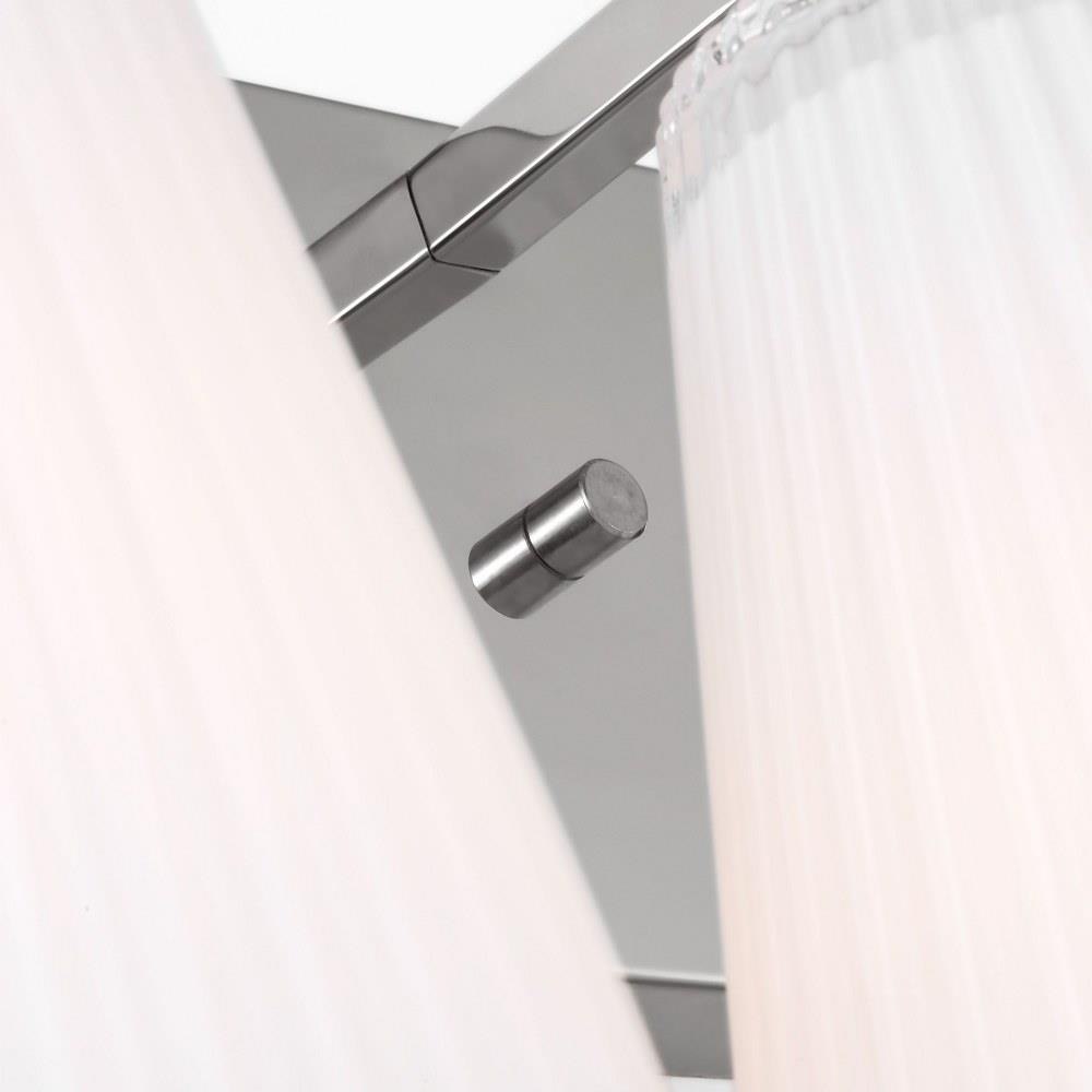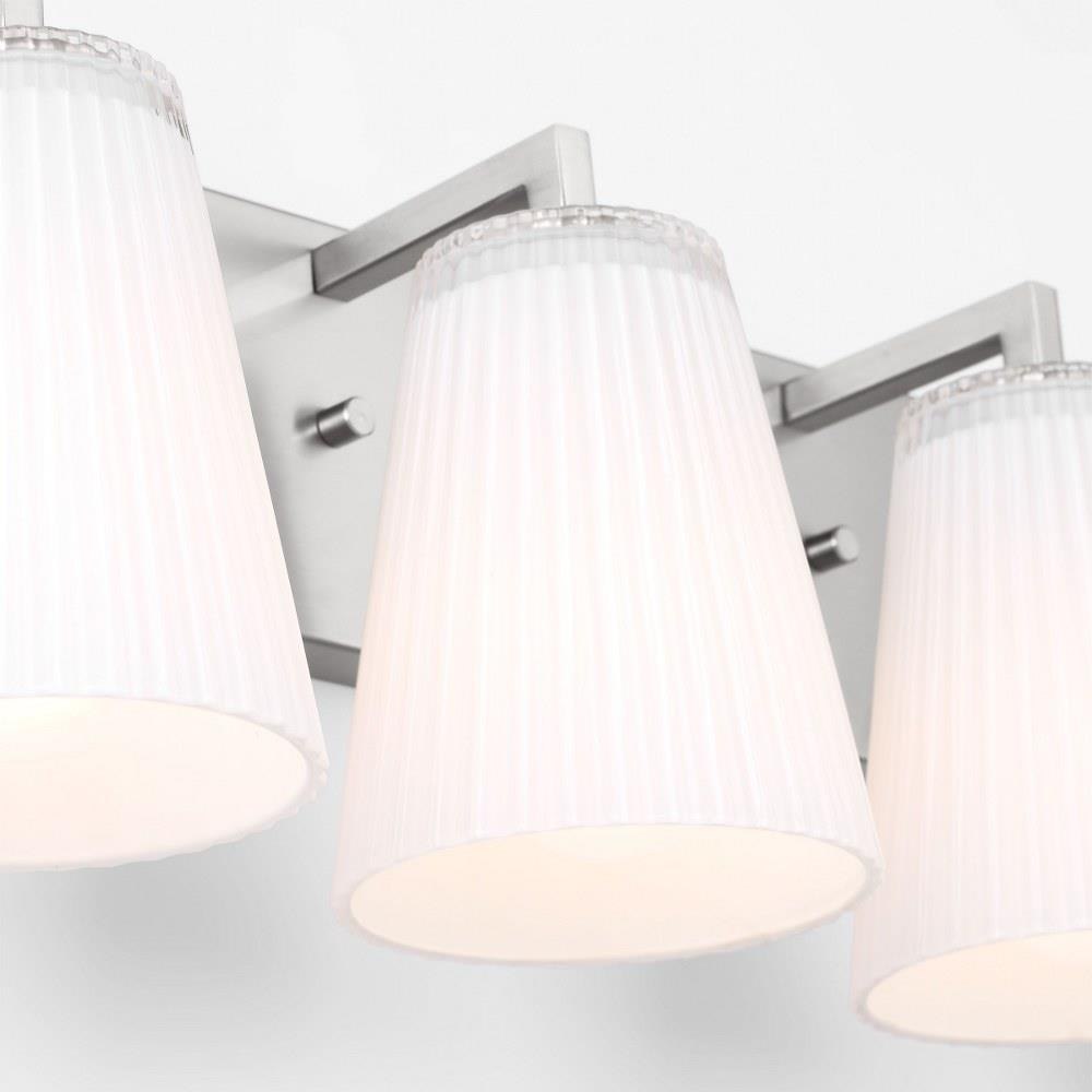 Upson features clear textured glass shades finished with a white interior that offers a soft layered glow. Available in Midnight Black, Satin Brass, Brushed Nickel, and Chrome. Upson offers flexibility in any application with one-light sconces, and two, three, and four-light vanities that are all available to be mounted up or down.