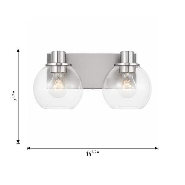 Rito 14.5 in. W x 7.125 in. H 2-Light Chrome Dimmable Medium Bathroom Vanity Light with No Bulbs Included