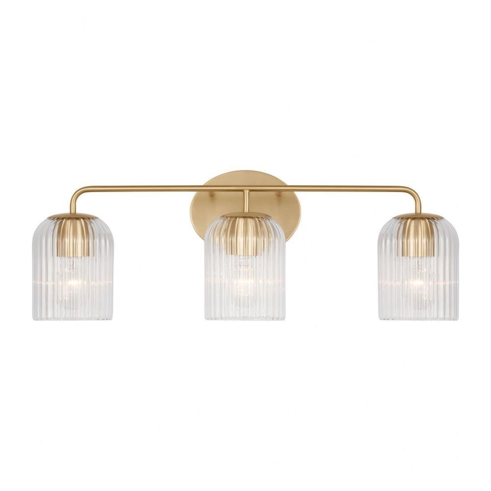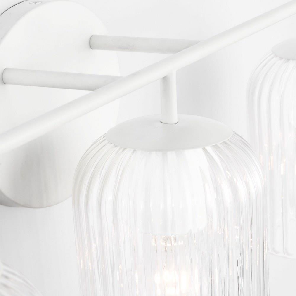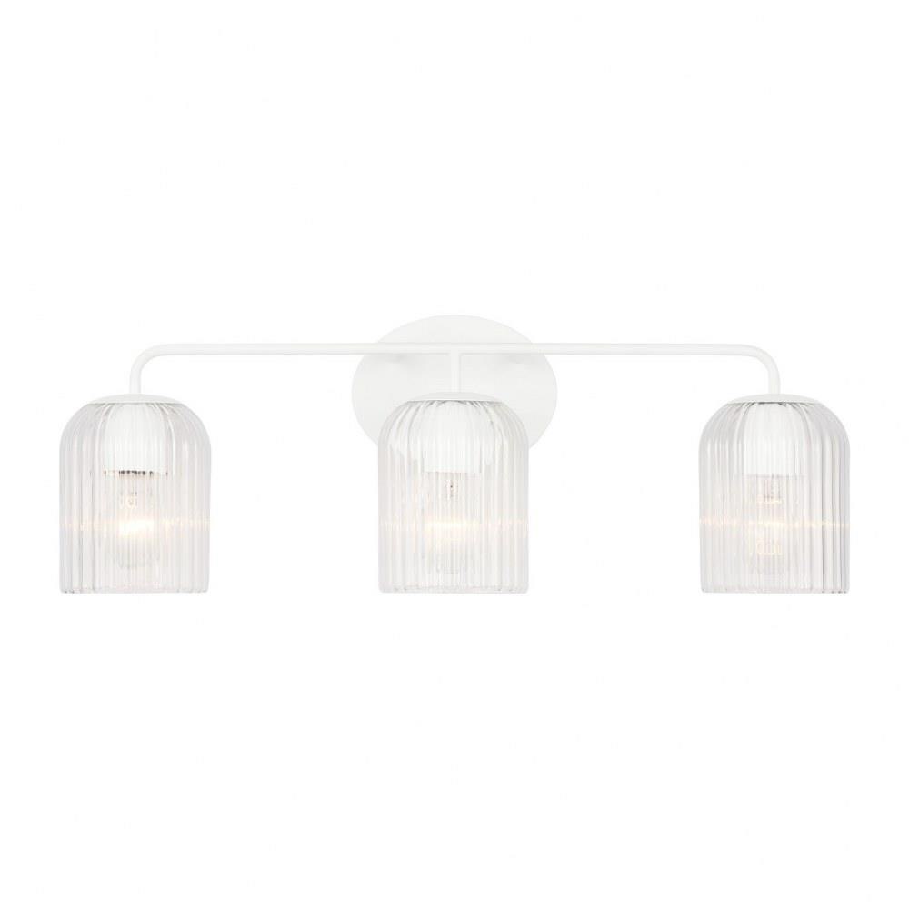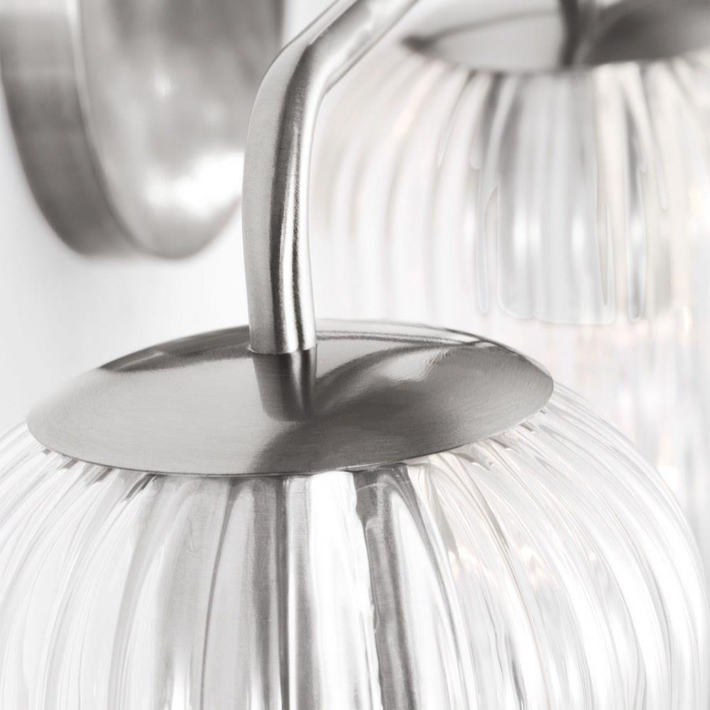 Soft curves and suspended ribbed glass shades bring softness and sparkle to the Eisele collection. The oval backplate gives fresh contour to a feminine design. Available in a one-light sconce, and two, three, four, and five-light vanities that are all available to be mounted up or down. Eisele offers five beautiful finishes of Satin Brass, Midnight Black, Brushed Nickel, Chrome, and a sophisticated Matte White.