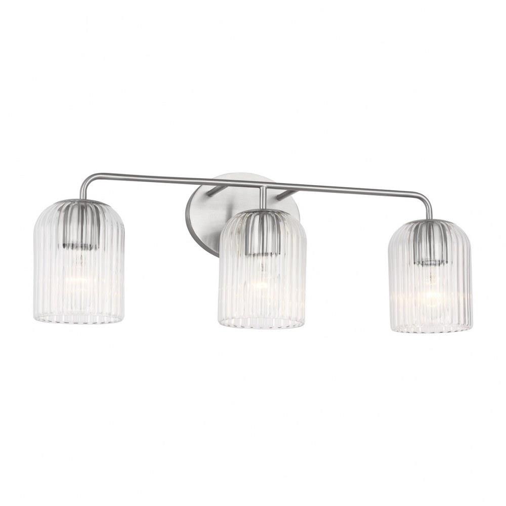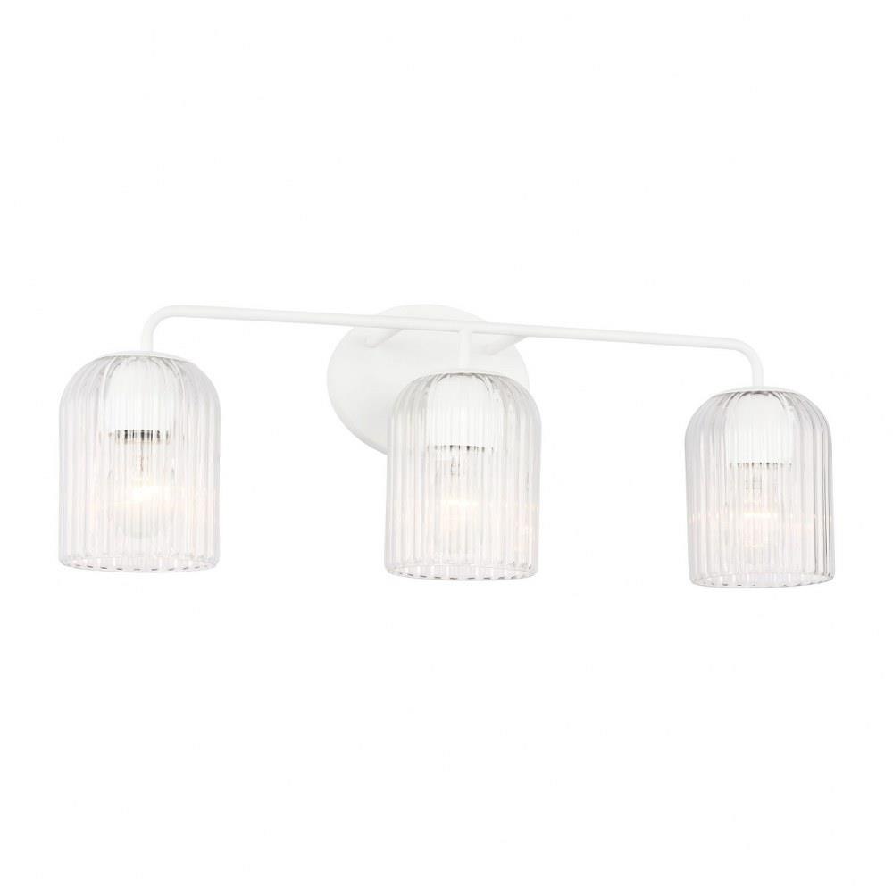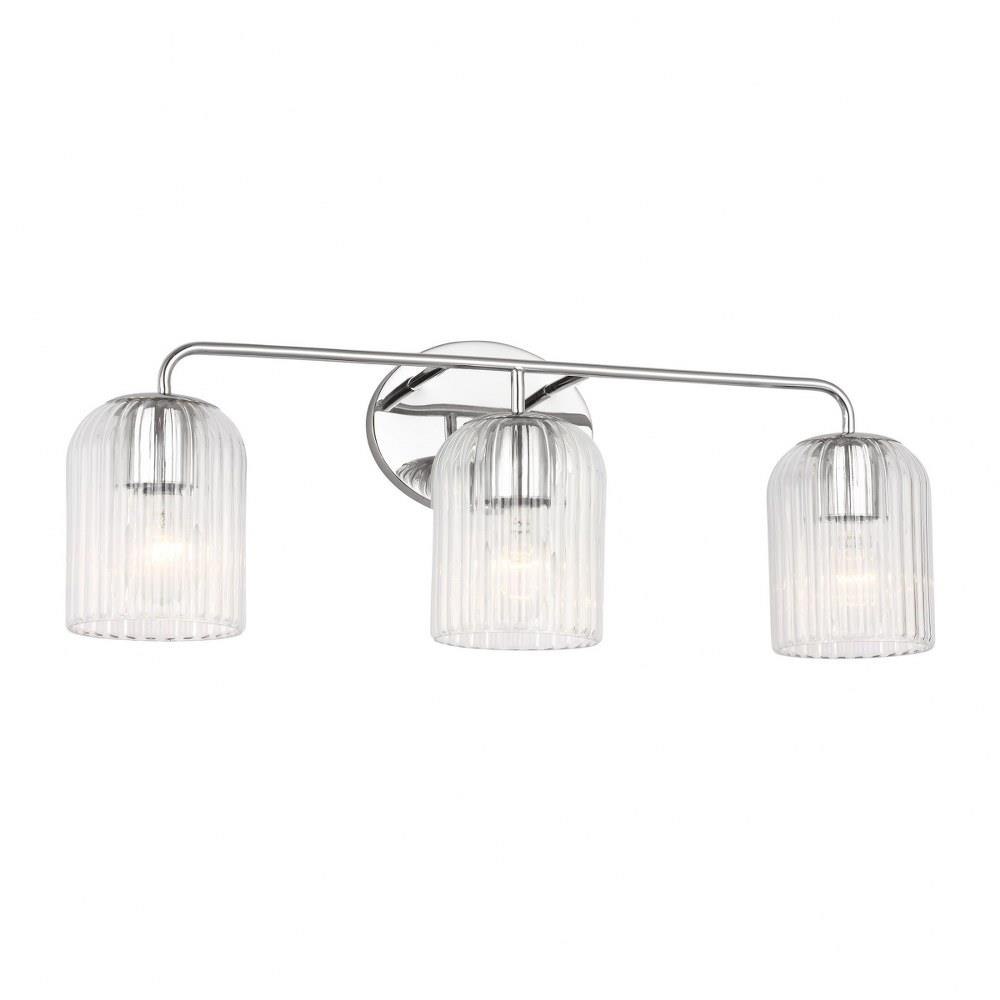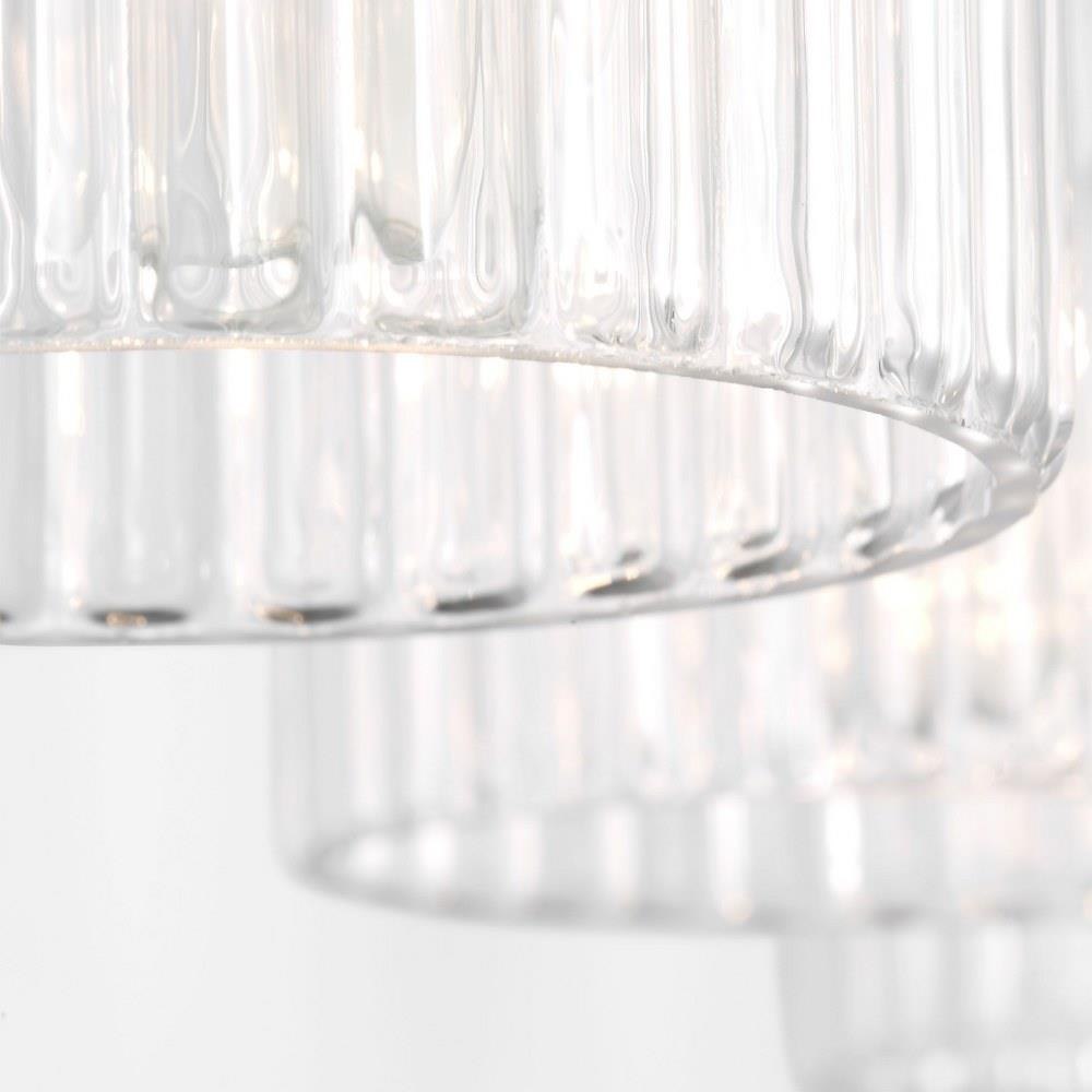 Soft curves and suspended ribbed glass shades bring softness and sparkle to the Eisele collection. The oval backplate gives fresh contour to a feminine design. Available in a one-light sconce, and two, three, four, and five-light vanities that are all available to be mounted up or down. Eisele offers five beautiful finishes of Satin Brass, Midnight Black, Brushed Nickel, Chrome, and a sophisticated Matte White.