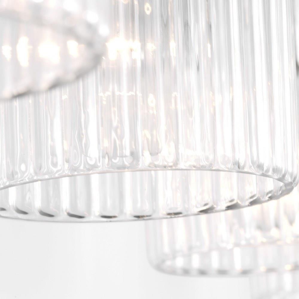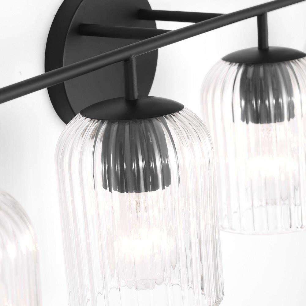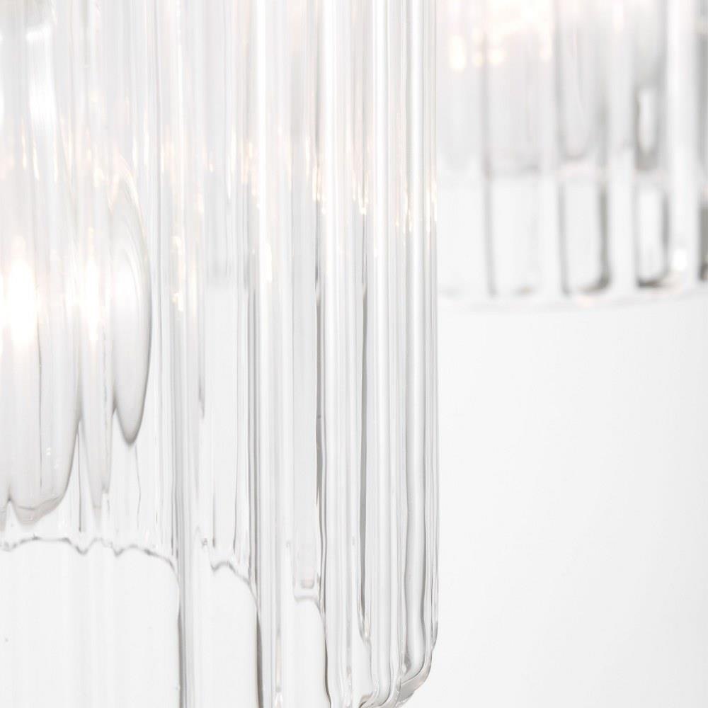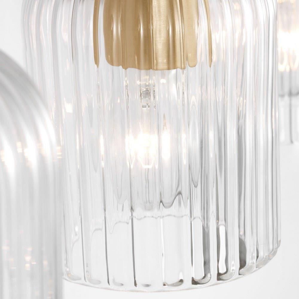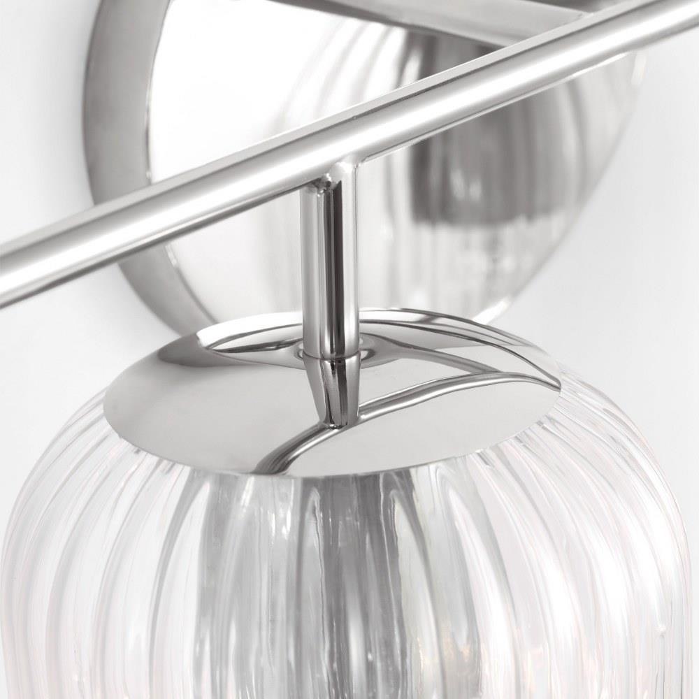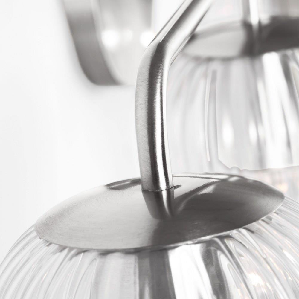 Soft curves and suspended ribbed glass shades bring softness and sparkle to the Eisele collection. The oval backplate gives fresh contour to a feminine design. Available in a one-light sconce, and two, three, four, and five-light vanities that are all available to be mounted up or down. Eisele offers five beautiful finishes of Satin Brass, Midnight Black, Brushed Nickel, Chrome, and a sophisticated Matte White.