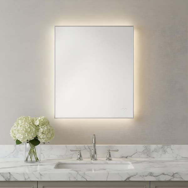 Cadre 30 in. x 30 in. Brushed Nickel Integrated LED Illuminated Dimmable Vanity Light Mirror