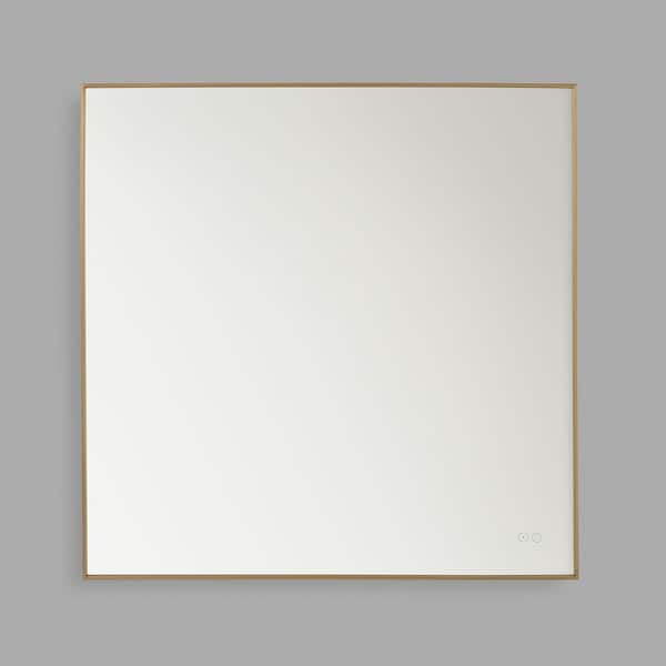 Cadre 36 in. x 36 in. Satin Brass Integrated LED Illuminated Dimmable Vanity Light Mirror