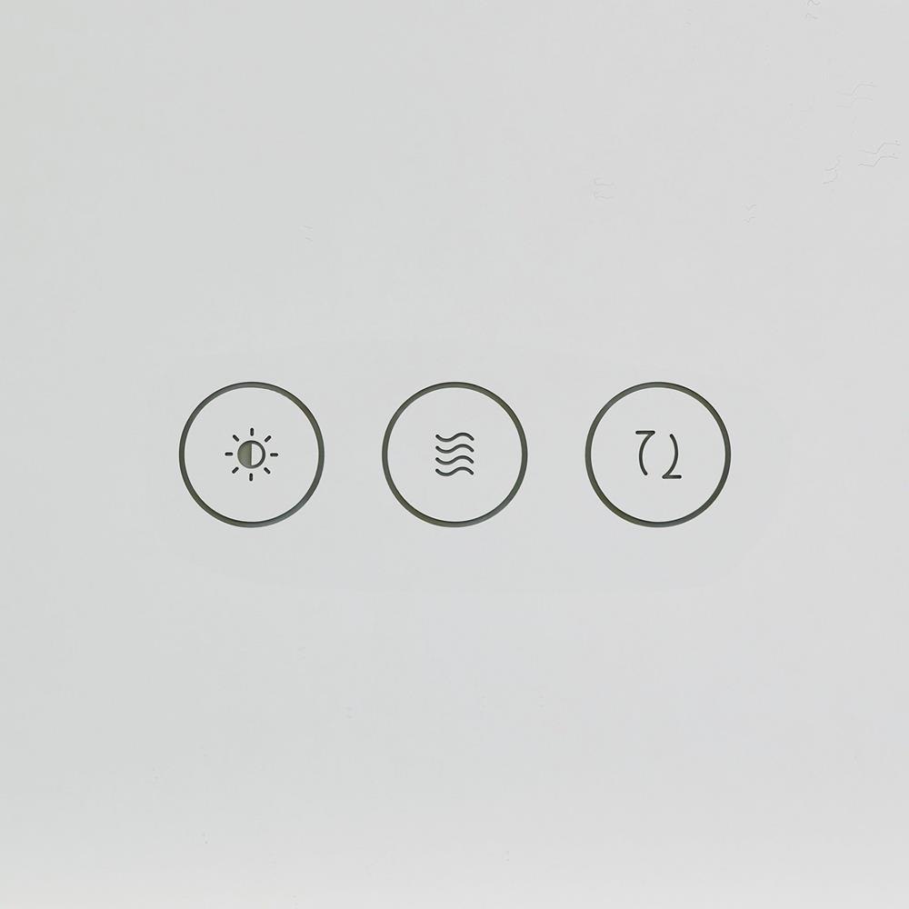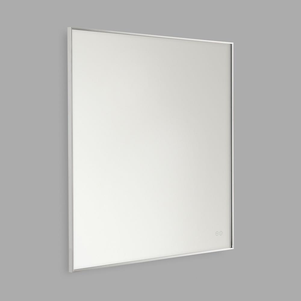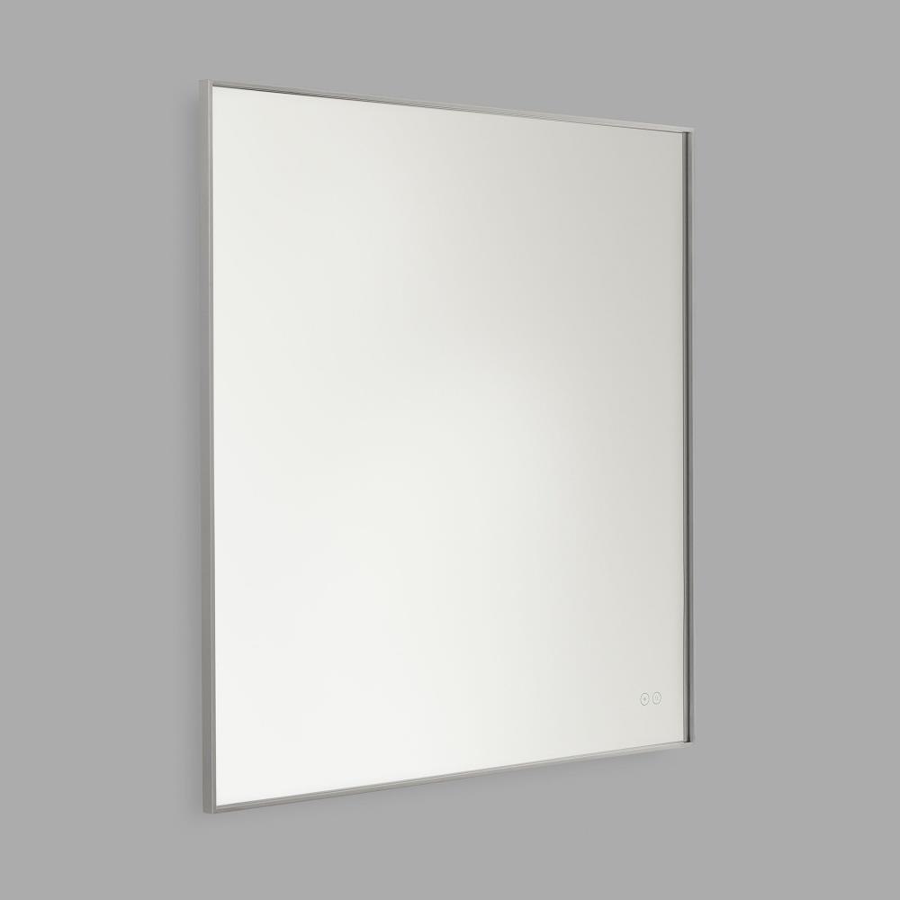 The square Cadre mirror by Generation Lighting features a warm backlit glow that creates a sophisticated statement. Functional yet subtle on-mirror touch controls allow you to dim the LED's intensity and adjust the color temperature as your needs change from task to mood lighting. The Cadre mirror is finished with a thin Brushed Nickel edge adding an elegant accent to the Cadre's simple aesthetic.