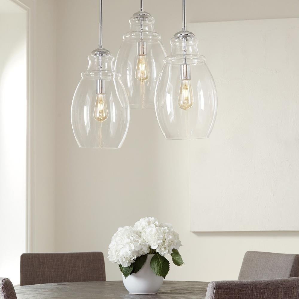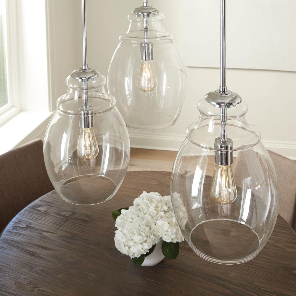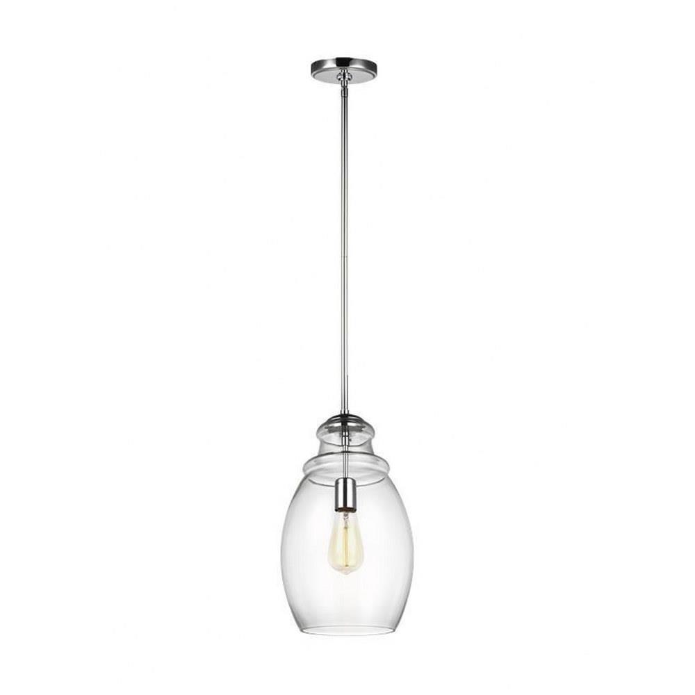 The Marino one light indoor pendant in chrome is the perfect way to achieve your desired fashion or functional needs in your home. Marino features a thick Clear Glass shade with a single lamp suspending downward from the center. The elegant turning detail at the top of the body compliments spaces ranging from traditional to modern. Marino is offered in three distinct finish options: Satin Nickel, Chrome and Oil Rubbed Bronze.Product Features and Benefits