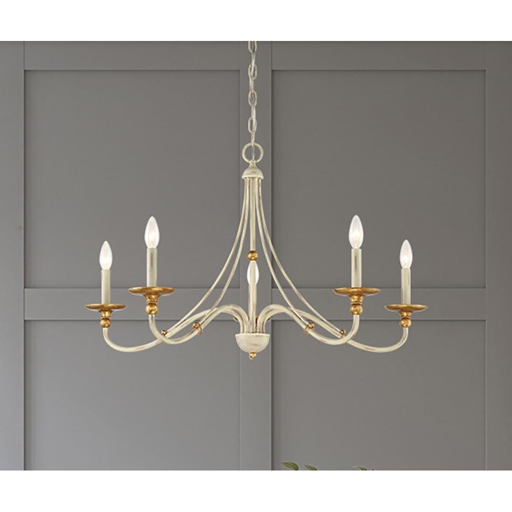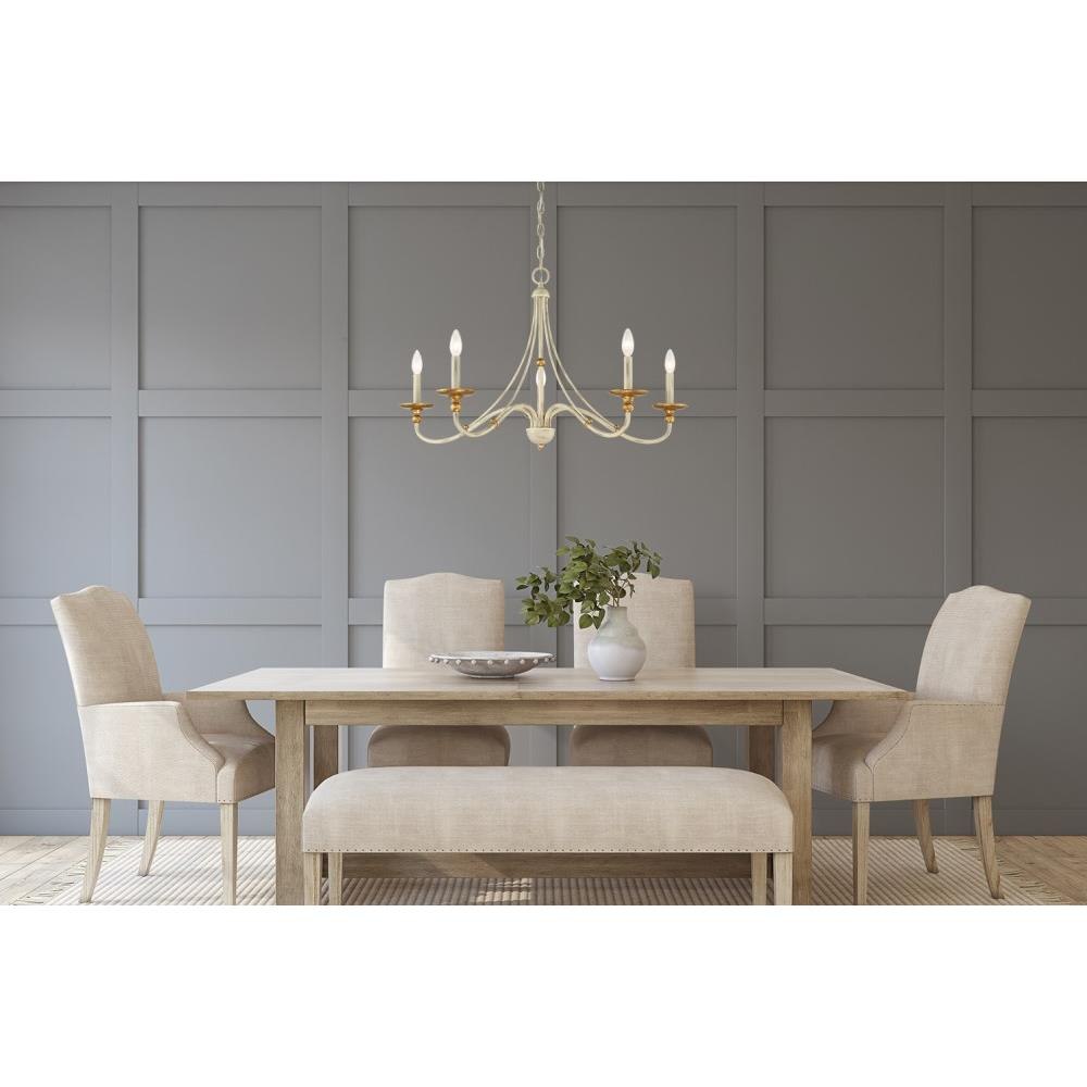 Illuminate your space with the Westchester County Chandelier, a stunning blend of traditional and transitional styles. Crafted from durable steel, this 5-light fixture features a striking sand coal finish complemented by skyline gold accents. Measuring 20 inches tall and 28 inches wide, its candle-style design and exposed bulbs create a warm, inviting ambiance. Perfect for enhancing dining areas or living rooms, this chandelier marries elegance with functionality, making it a timeless addition to any decor.