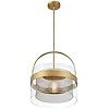 Product Summary: Minka-Lavery 1916-732 Ravik 15.5" 1-Light Convertible Pendant/Semi-Flush Mount - Legacy Brass with Clear and Grey Glass