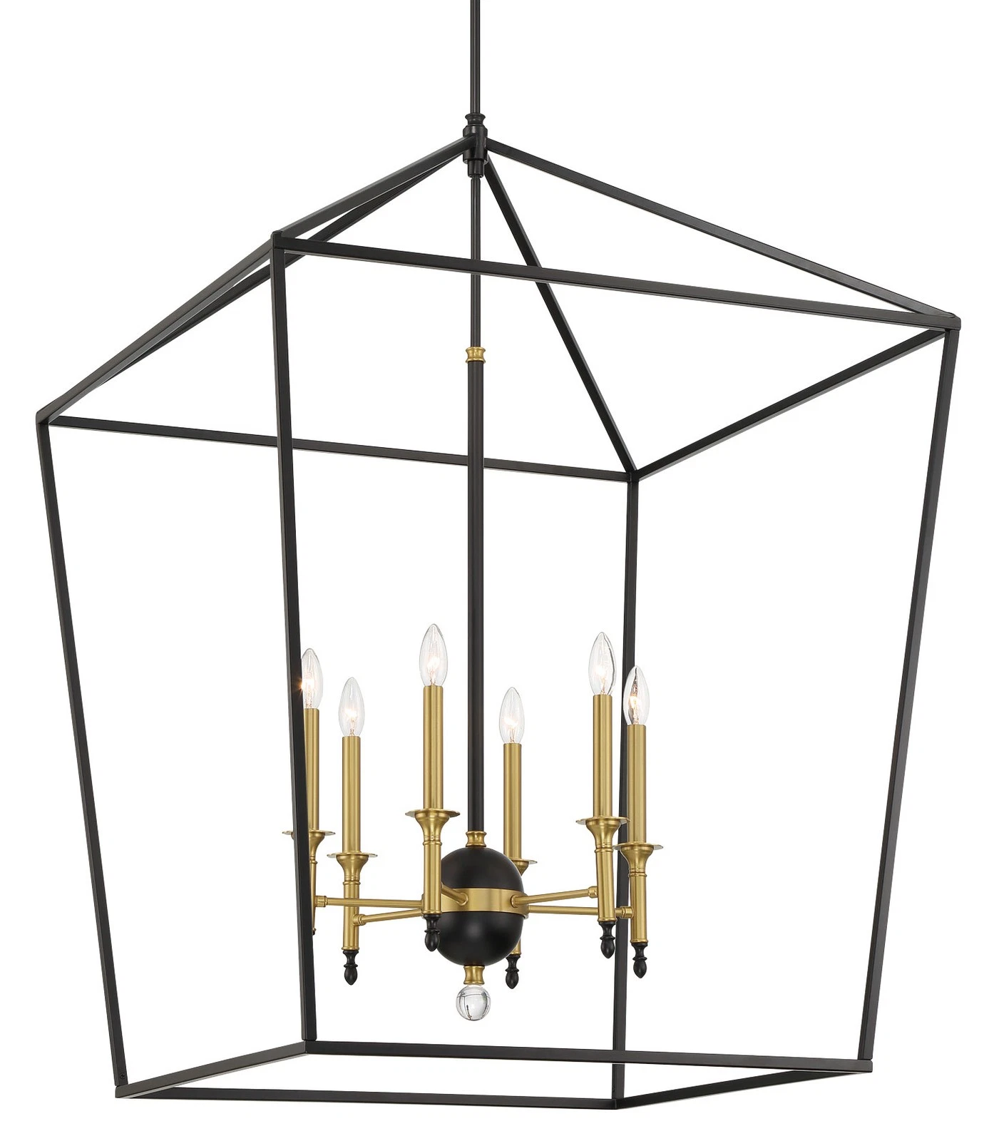 Minka Lavery 2106 Townhall 6 Light 32"W Taper Candle Pendant - Coal / Soft Brass