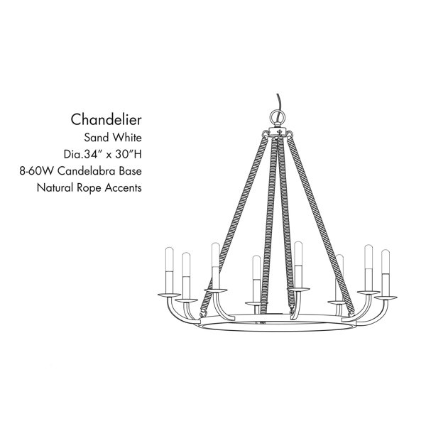Illuminate your home with the Gracie Oaks Lanton 8 light chandelier. This stunning light fixture is more than just a source of light, it's a statement piece that enhances your home's aesthetic. With its sand-white finish, it adds a touch of modern sophistication that complements any decor. Whether you're looking to brighten up your kitchen, dining room, foyer, or bedroom, this chandelier is a perfect choice. Its adjustable height allows you to customize it to fit your space perfectly, creating a warm and inviting atmosphere. The chandelier's eight lights provide ample illumination, making your space feel cozy and welcoming. Designed for damp environments, this chandelier is versatile and can be used in various rooms in your home. Made from durable steel and rope, this chandelier is built to last, ensuring you enjoy its beauty and functionality for years to come. The Gracie Oaks Lanton 8 light chandelier is not just a light fixture, it's an investment in your home's style and comfort.