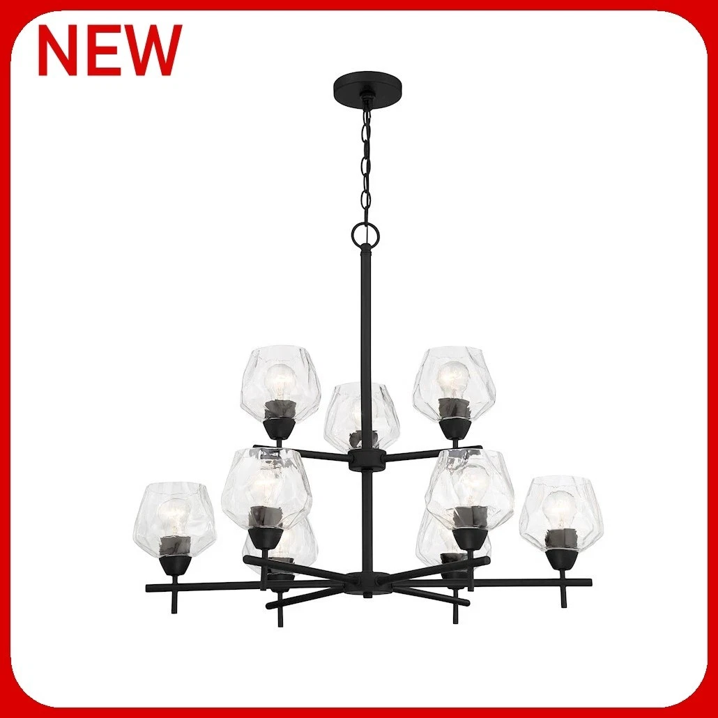 Coal: Clear Seeded glass. Width: 31". Product Weight: 11.9 lbs. Bulb Shape: A19. Number of Bulbs: 9. Electrical Specifications. Dimmable with compatible dimming bulbs. Maximum Overall Height: 100-3/8".