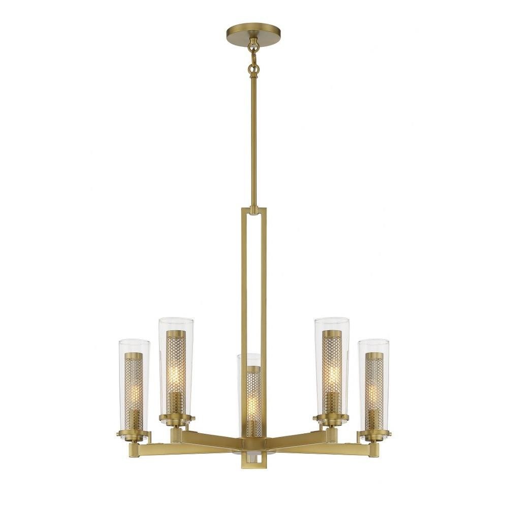 Introducing the Emmerham 5 Light Chandelier, a stunning centerpiece for any modern or transitional space. Standing 23.75 inches tall and 26 inches wide, this elegant fixture combines the sophistication of glass with the durability of steel. Designed with five incandescent bulbs, it provides ample illumination while enhancing your decor. The armed and shaded design creates a harmonious blend of style and functionality, making it a perfect addition to elevate your home ambiance.