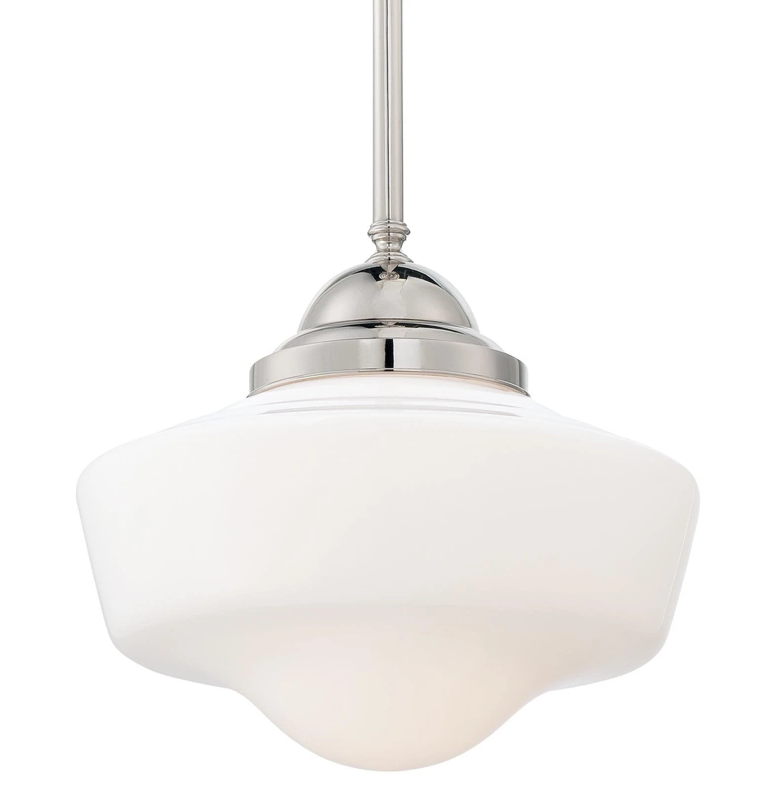 Minka Lavery 2256-613 1 Light 12.25" Height Indoor Schoolhouse Pendant in Polished Nickel. Single Light 12.25" Height Indoor Schoolhouse Pendant in Polished Nickel. Opal glass schoolhouse shade. Pendant Type: Full Sized.