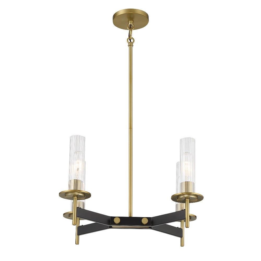Introducing the Baldwin Park 4 Light Chandelier, a stunning addition to any space. Standing at 11.5 inches tall and 18 inches wide, this mid-century modern and transitional piece showcases a harmonious blend of glass and steel. Its exposed bulb design enhances the aesthetic while providing ample illumination with four incandescent bulbs. Perfect for elevating your home decor, the Baldwin Park chandelier effortlessly combines style and functionality, making it a captivating focal point in any room.