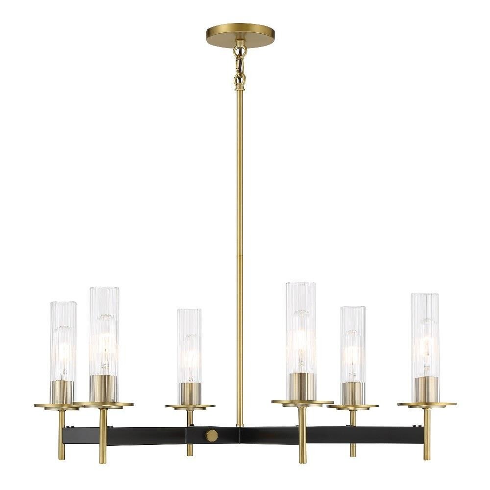 Introducing the Baldwin Park 6 Light Chandelier, a stunning addition to your space. Standing 11.5 inches tall and 27 inches wide, this chandelier combines mid-century modern and transitional styles. Crafted from durable glass and steel, it features an exposed bulb design, beautifully shaded to create a warm ambiance. With six incandescent bulbs, it provides ample lighting while enhancing your décor with its elegant presence. Perfect for elevating any room's aesthetic.