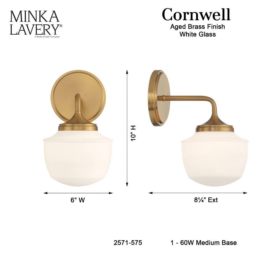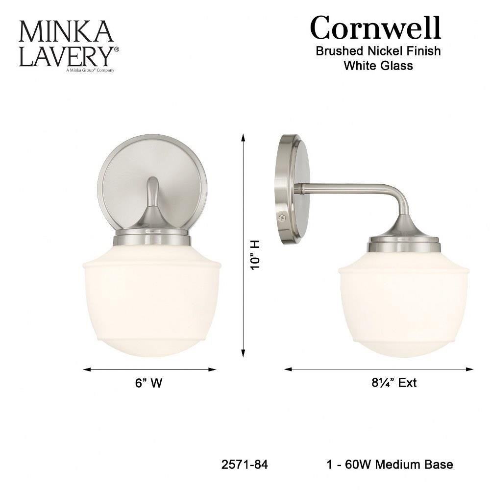 Introducing the Cornwell 1 Light Bath Vanity, a stunning addition to your bathroom decor. Standing at 10 inches tall and 6 inches wide, this elegant fixture features a sleek design crafted from durable glass and steel. The single incandescent bulb illuminates your space with a warm glow, enhancing both functionality and style. The Cornwell collection seamlessly blends modern aesthetics with timeless appeal, making it the perfect choice for any vanity setting.