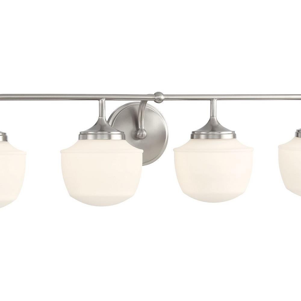 Introducing the Cornwell 4 Light Bath Vanity, a stunning addition to your bathroom decor. Standing 8 inches tall and 32 inches wide, this elegant fixture features a sleek combination of glass and steel, providing both durability and style. Designed to accommodate four incandescent bulbs, it offers ample illumination for your space. The Cornwell collection effortlessly blends modern aesthetics with practical functionality, enhancing your vanity with a touch of sophistication.