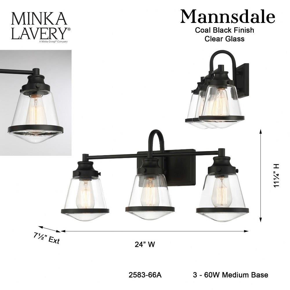 Introducing the Mannsdale 3 Light Bath Vanity, a stylish addition to your bathroom decor. Standing 11.25 inches tall and 24 inches wide, this elegant fixture features a contemporary design crafted from durable glass and steel. With three incandescent bulbs, it provides ample illumination, enhancing both functionality and ambiance. The Mannsdale collection seamlessly blends modern aesthetics with practicality, making it a perfect choice for any vanity space.