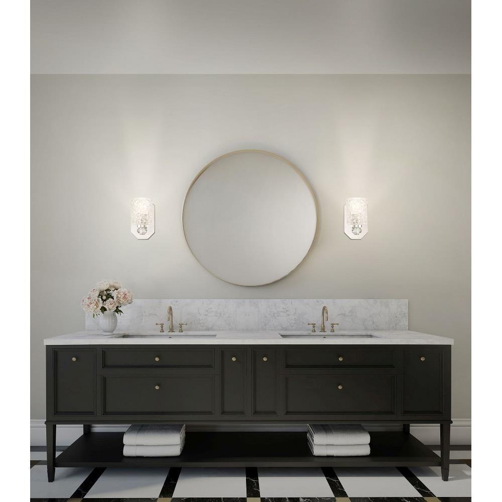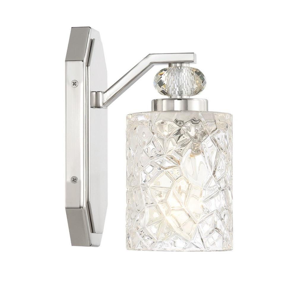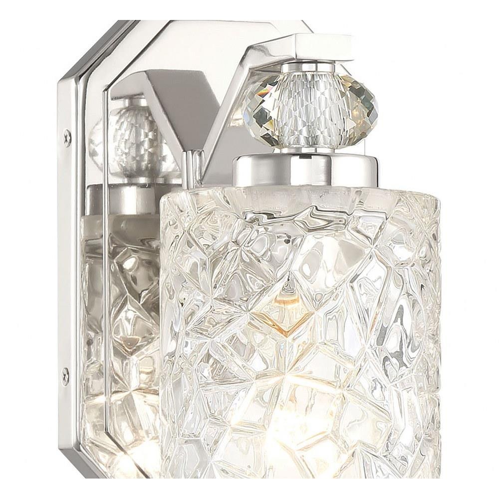 Introducing the Crystal Kay 1 Light Bath Vanity, a stunning addition to any bathroom. Standing at 8.25 inches tall and 4.5 inches wide, this elegant wall light features a beautiful glass construction complemented by a durable steel frame. Designed for incandescent bulbs, it offers warm illumination that enhances your space. The Crystal Kay collection embodies sophistication, making it the perfect choice for elevating your vanity area with both style and functionality.