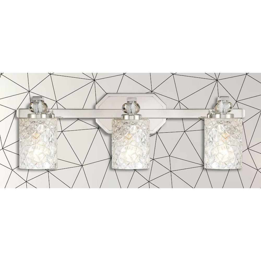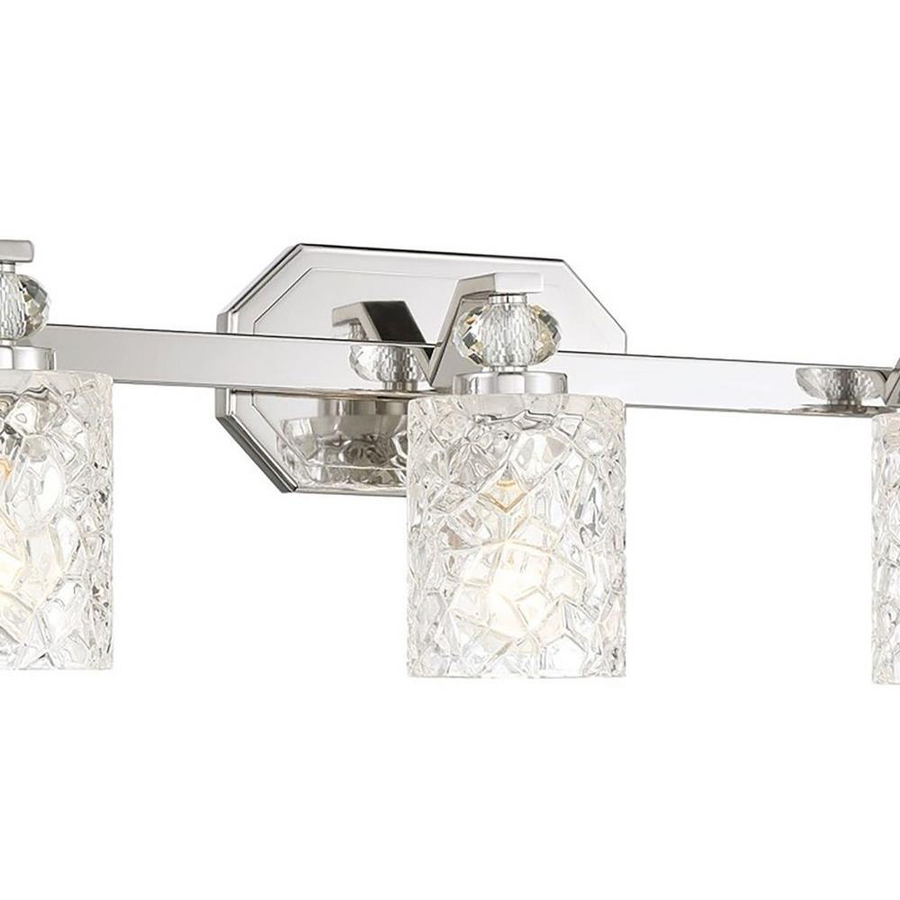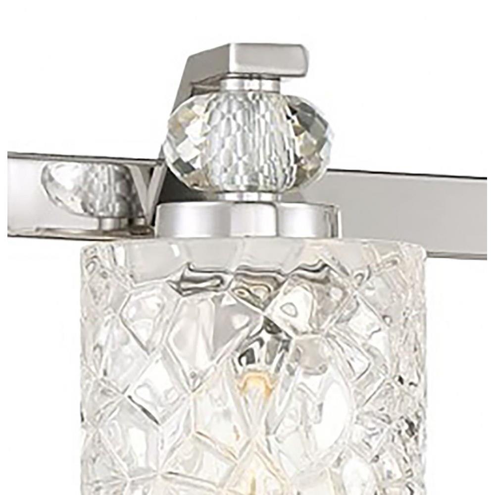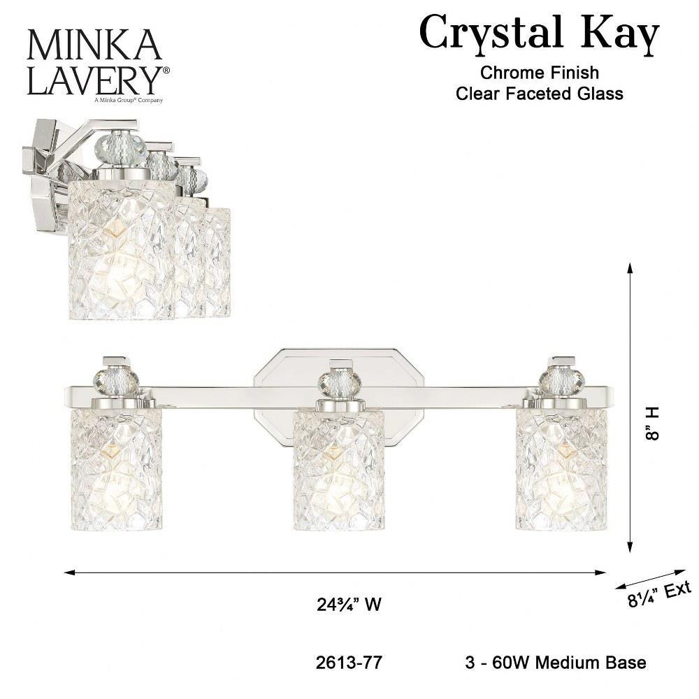 Illuminate your space with the Crystal Kay 3 Light Bath Vanity, showcasing a sophisticated design that combines glass and steel for a stunning finish. Measuring 7.88 inches tall and 24.5 inches wide, this elegant fixture is perfect for enhancing your bathroom decor. Designed to accommodate three incandescent bulbs, it offers ample lighting while adding a touch of luxury to your vanity area. Elevate your home with the timeless charm of the Crystal Kay collection.
