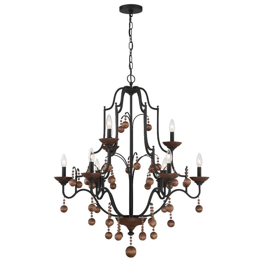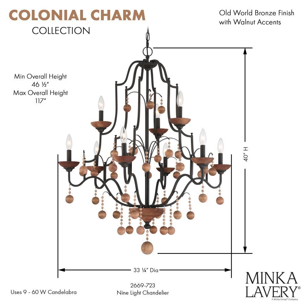 Introducing the Colonial Charm 9 Light 2-Tier Chandelier, a stunning centerpiece for any room. Standing 40 inches tall and 33.13 inches wide, this chandelier beautifully combines rustic and traditional styles. Crafted from durable steel, its candle-style design and exposed bulbs create a warm, inviting atmosphere. With nine incandescent bulbs, it provides ample illumination, making it perfect for dining areas or grand entryways. Elevate your space with this exquisite lighting fixture from the Colonial Charm collection.