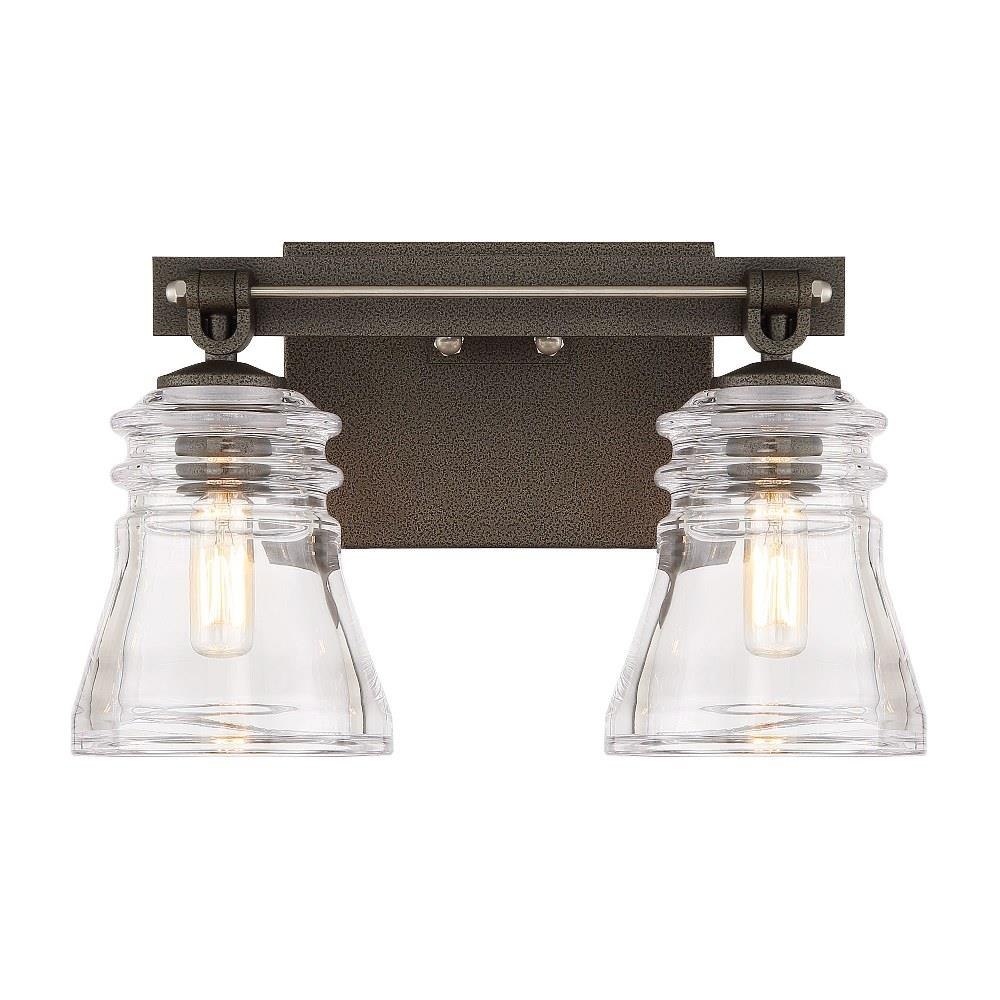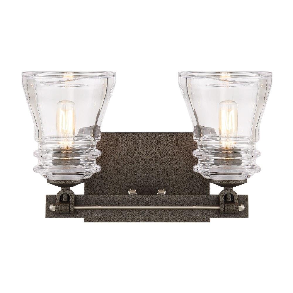 Introducing the Graham Avenue 2 Light Bath Vanity, a stunning addition to your modern or transitional decor. Standing 8.38 inches tall and 13.5 inches wide, this wall light features a stylish design with exposed bulbs and shaded glass, combining elegance with functionality. Crafted from durable glass and steel, it accommodates two incandescent bulbs, providing ample illumination for your space. Elevate your bathroom's ambiance with this chic and versatile lighting solution.