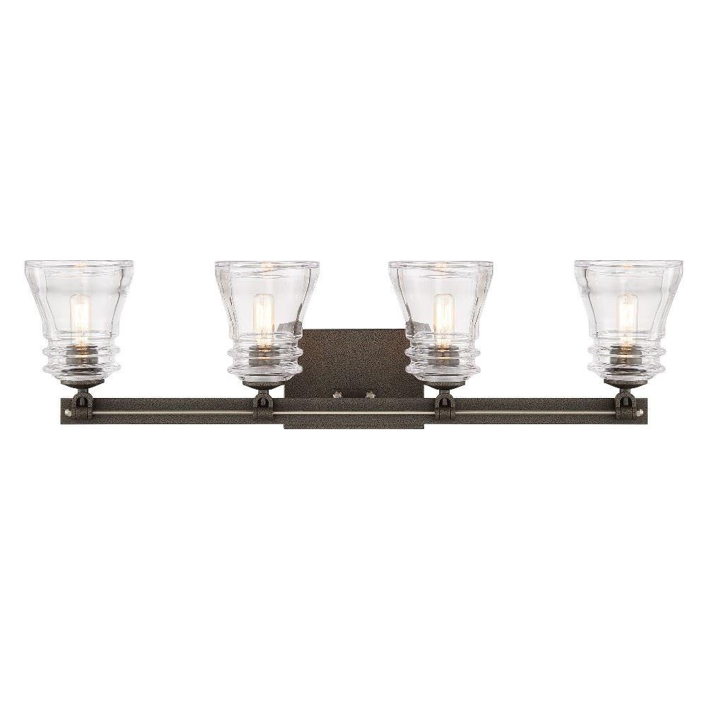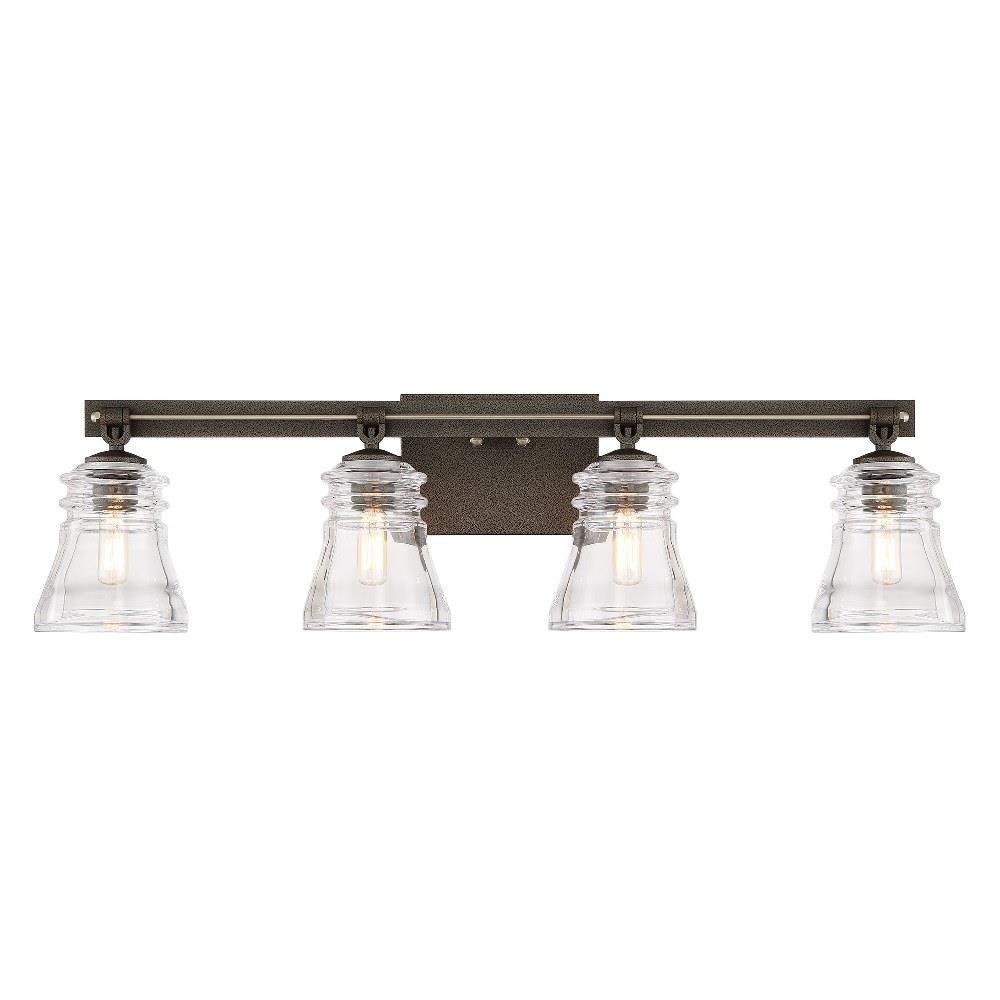 Illuminate your space with the Graham Avenue 4 Light Bath Vanity, a stunning blend of modern and transitional design. Standing 8.38 inches tall and 30.5 inches wide, this fixture features a sleek combination of glass and steel materials. The exposed bulb design enhances its contemporary appeal, while the shaded elements provide a warm, inviting glow. Perfect for any bathroom, this elegant vanity light accommodates four incandescent bulbs, ensuring ample illumination for your daily routines.