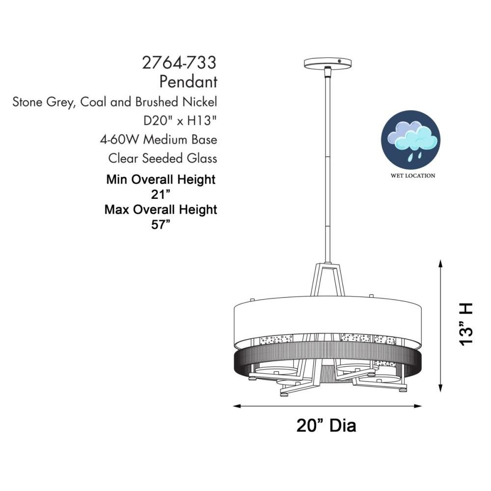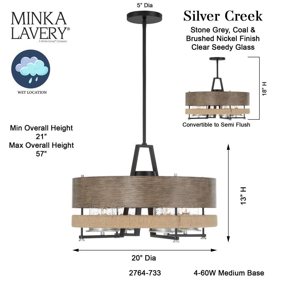 Introducing the Silver Creek 4 Light Convertible Pendant, a stunning addition to your home decor. Standing 13.25 inches tall and 20 inches wide, this pendant blends farmhouse and rustic styles seamlessly. Crafted from durable glass and steel, it features an exposed bulb design that enhances its charm. With four incandescent bulbs, it provides ample illumination, making it perfect for dining areas or kitchens. Elevate your space with this versatile and elegant lighting solution.