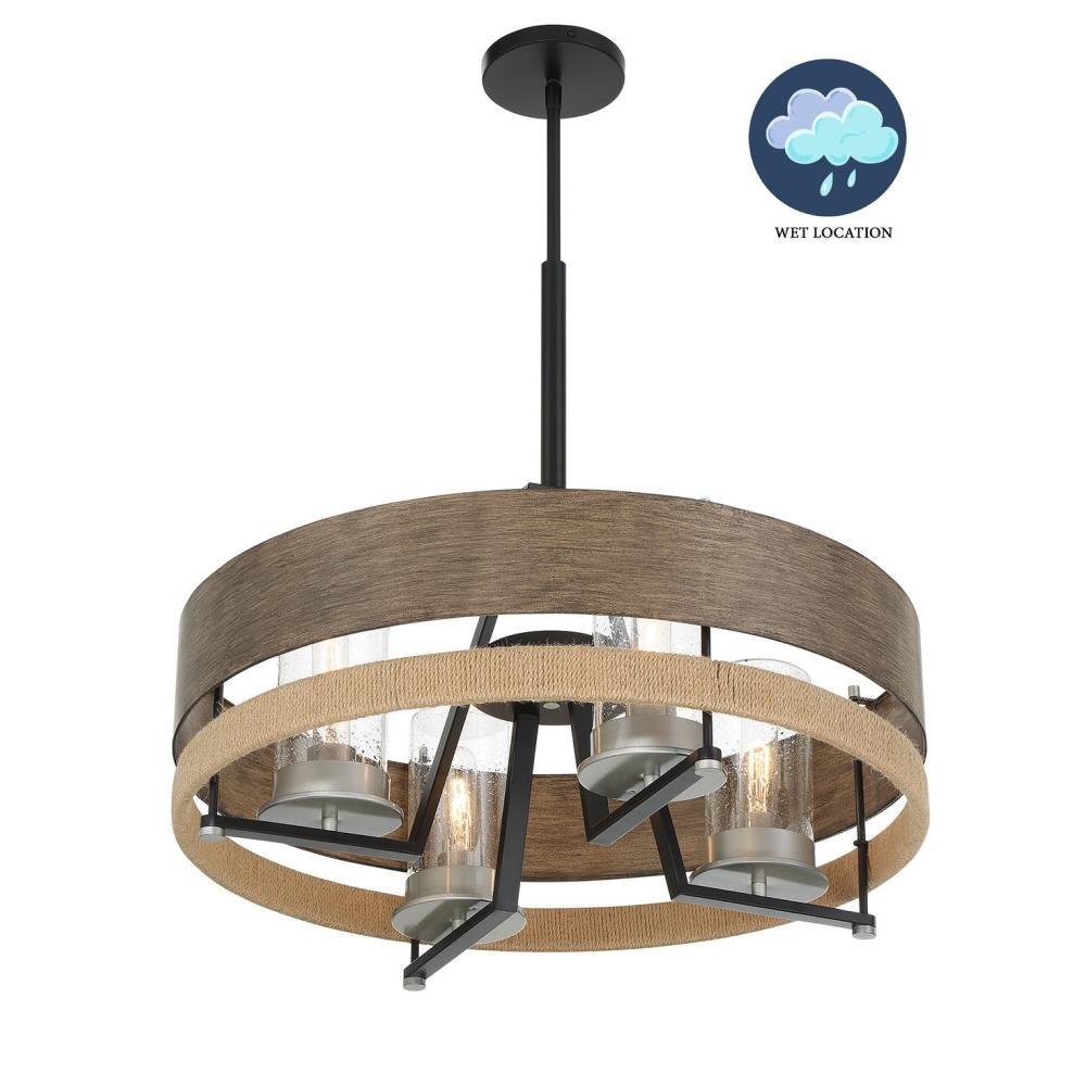 Introducing the Silver Creek 4 Light Chandelier, a stunning addition to your home decor. Standing 22.25 inches tall and 24 inches wide, this chandelier blends rustic charm with farmhouse elegance. Crafted from durable glass and steel, it features an exposed bulb design that enhances its vintage appeal. With four incandescent bulbs, it provides ample illumination, making it perfect for dining areas or living spaces. Elevate your home’s ambiance with this exquisite lighting fixture from the Silver Creek collection.