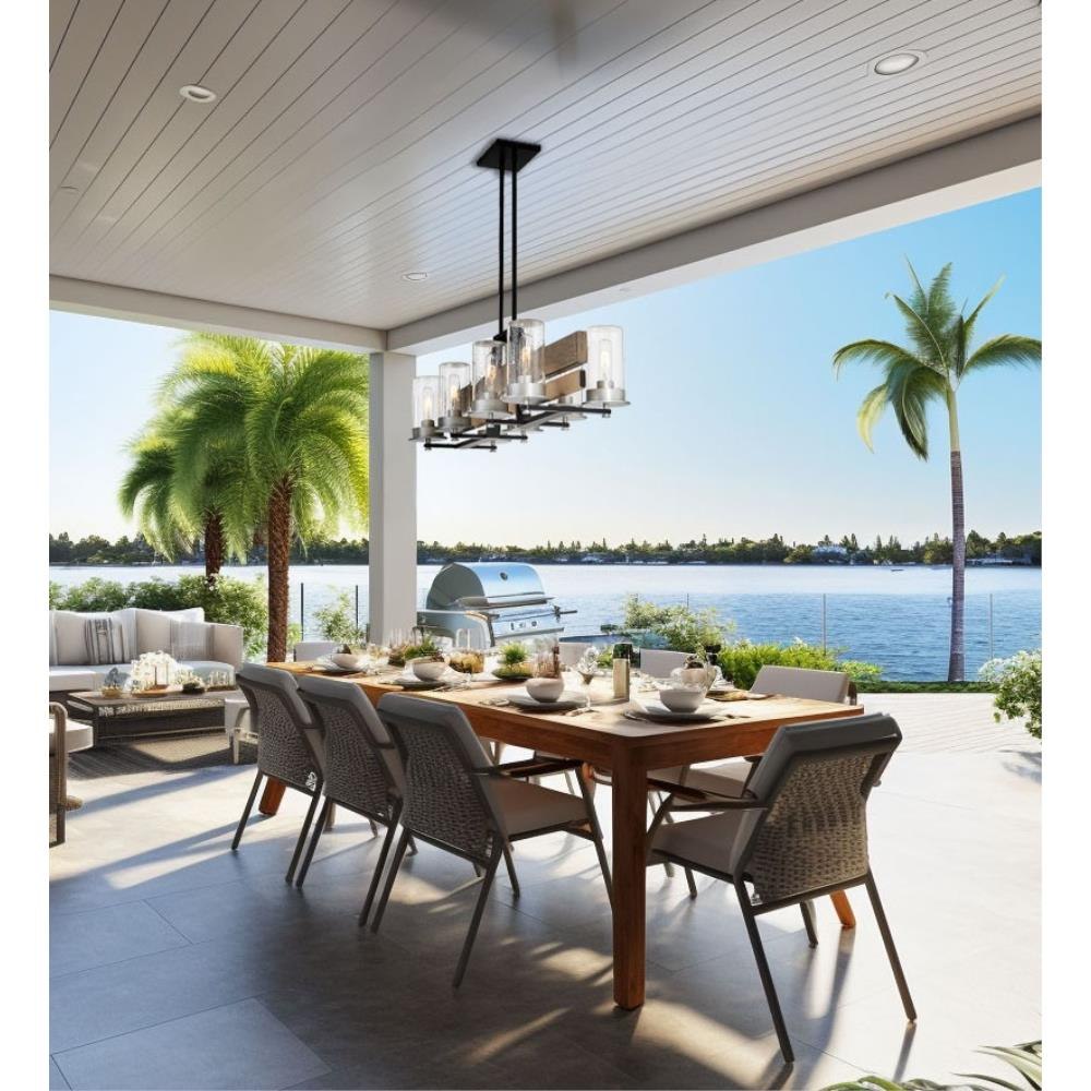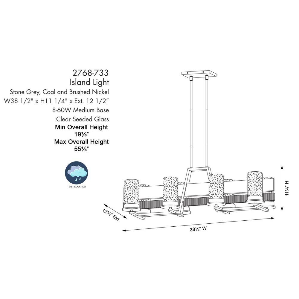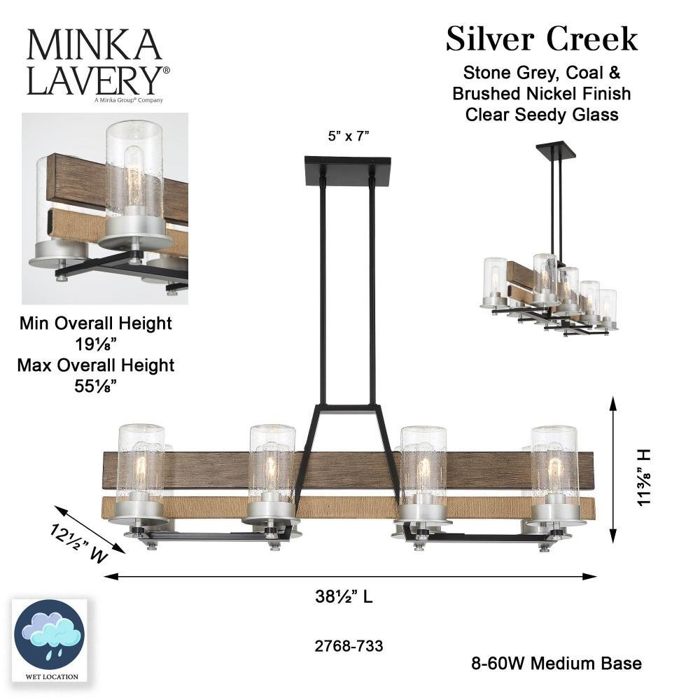 Introducing the Silver Creek 8 Light Island Chandelier, a stunning addition to your home decor. Standing at 11.38 inches tall and 38.5 inches wide, this chandelier beautifully combines farmhouse and rustic styles. Crafted from high-quality glass and steel, it features an exposed bulb design complemented by shaded elements, creating a warm and inviting ambiance. With eight incandescent bulbs, it ensures ample illumination, making it perfect for dining areas or kitchens.