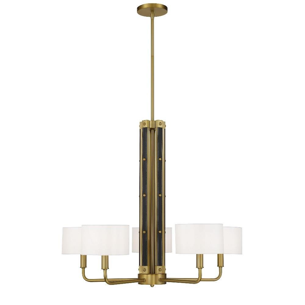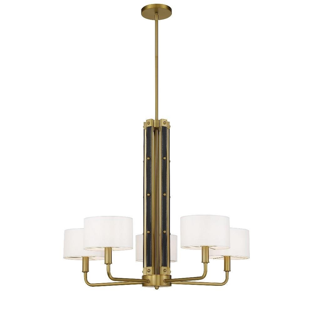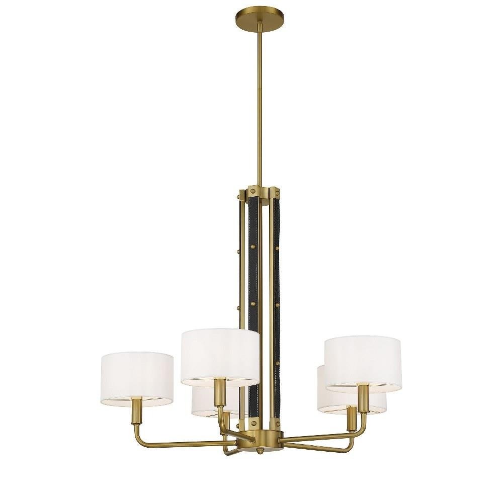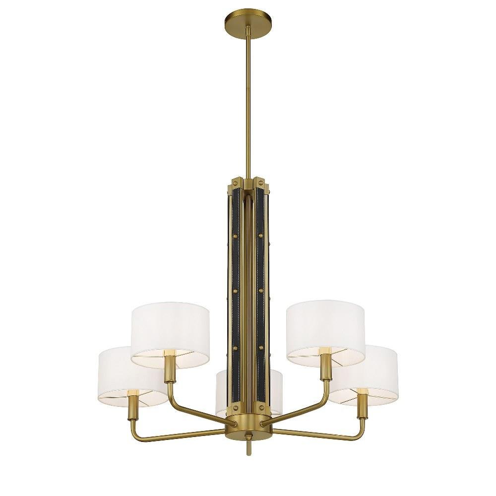 Introducing the Chelsea 5 Light Chandelier, a stunning centerpiece that combines contemporary and mid-century modern styles. Standing 26 inches tall and 30 inches wide, this chandelier features a sophisticated design with five incandescent bulbs, elegantly shaded for a warm glow. Crafted from high-quality fabric, leather, and steel, it promises durability and a touch of luxury. The armed design adds a unique flair, making it a perfect addition to any stylish interior.