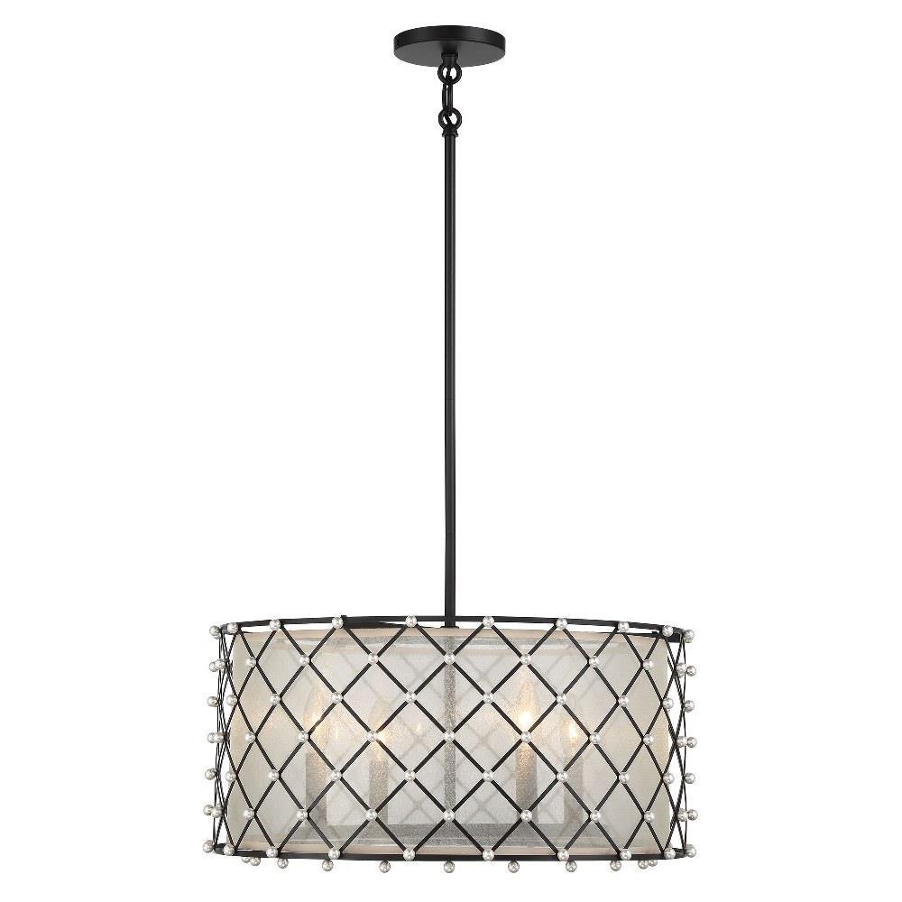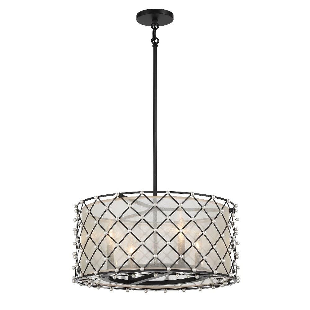 Introducing the Sheer Elegance 4 Light Convertible Pendant, a stunning blend of modern and transitional design. Standing 14 inches tall and 21.25 inches wide, this pendant features a unique caged and shaded design, crafted from high-quality fabric and steel. Accommodating four incandescent bulbs, it offers a warm and inviting glow, perfect for enhancing any space. Elevate your decor with this exquisite lighting solution from the Sheer Elegance collection, where style meets functionality.