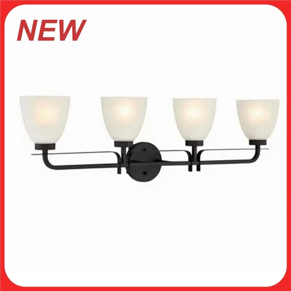 Hampton Bay Tustna 4-Light Vanity Fixture Brushed Nickel Finish Opal Glass Shade