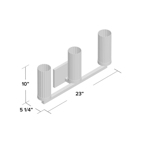 Defined by its clean lines and two-toned finish, this vanity light brings a touch of contemporary style as it brightens your powder room. Spanning 23" wide, this metal fixture features a rectangular backplate and angular arms in an aged kinston bronze finish, while a trio of cylindrical glass shades are propped up by brushed brass-finished holders. Three 60 W T10 medium-base bulbs (included) sit within each shade, balancing out the modern design with a dash of vintage inspiration.