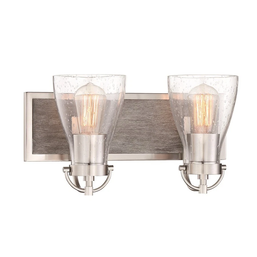 Minka Lavery Garrison 2 Light Bath, Brushed Nickel/Wood - 3342-098