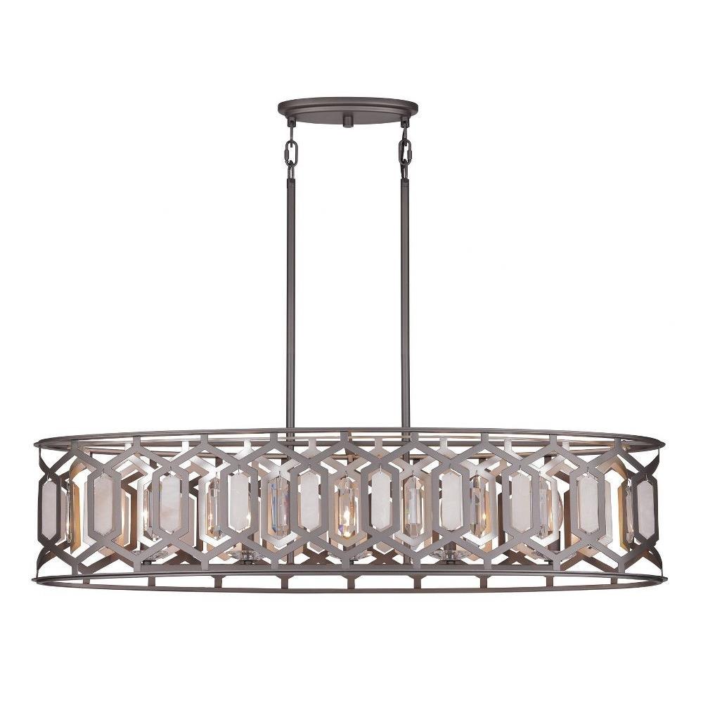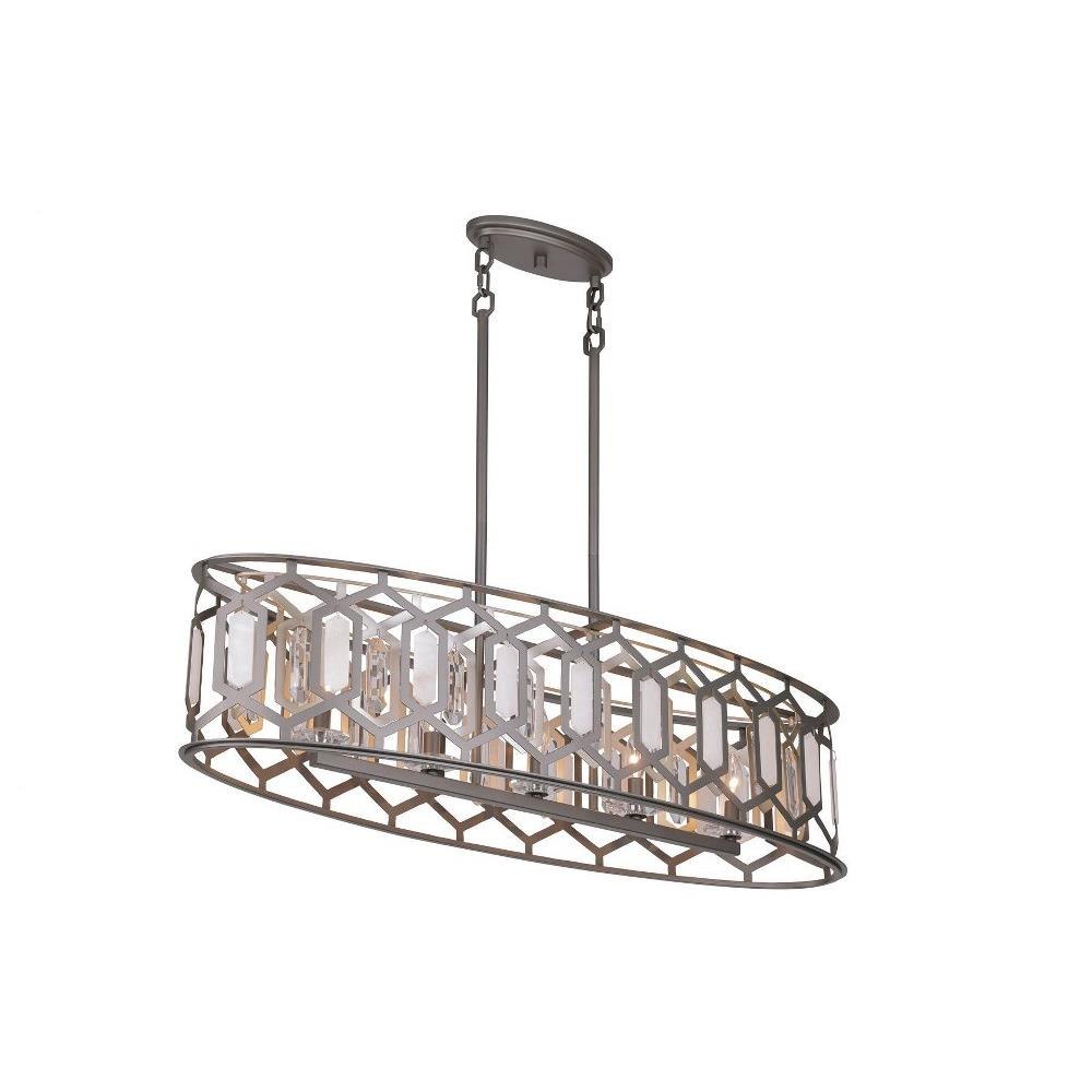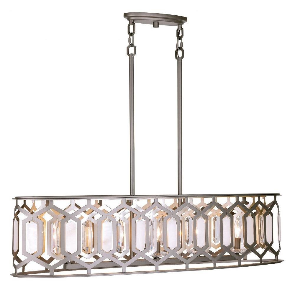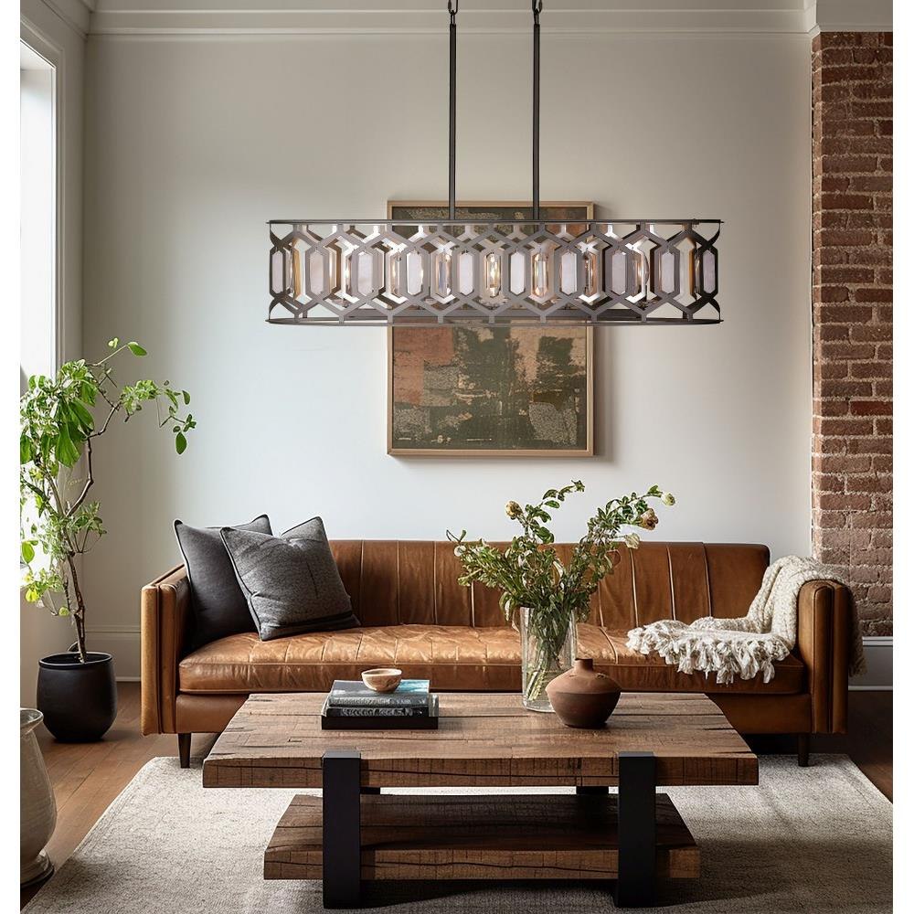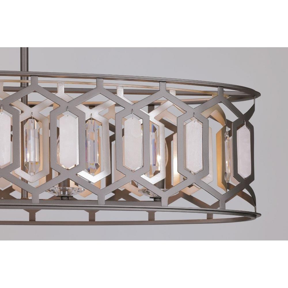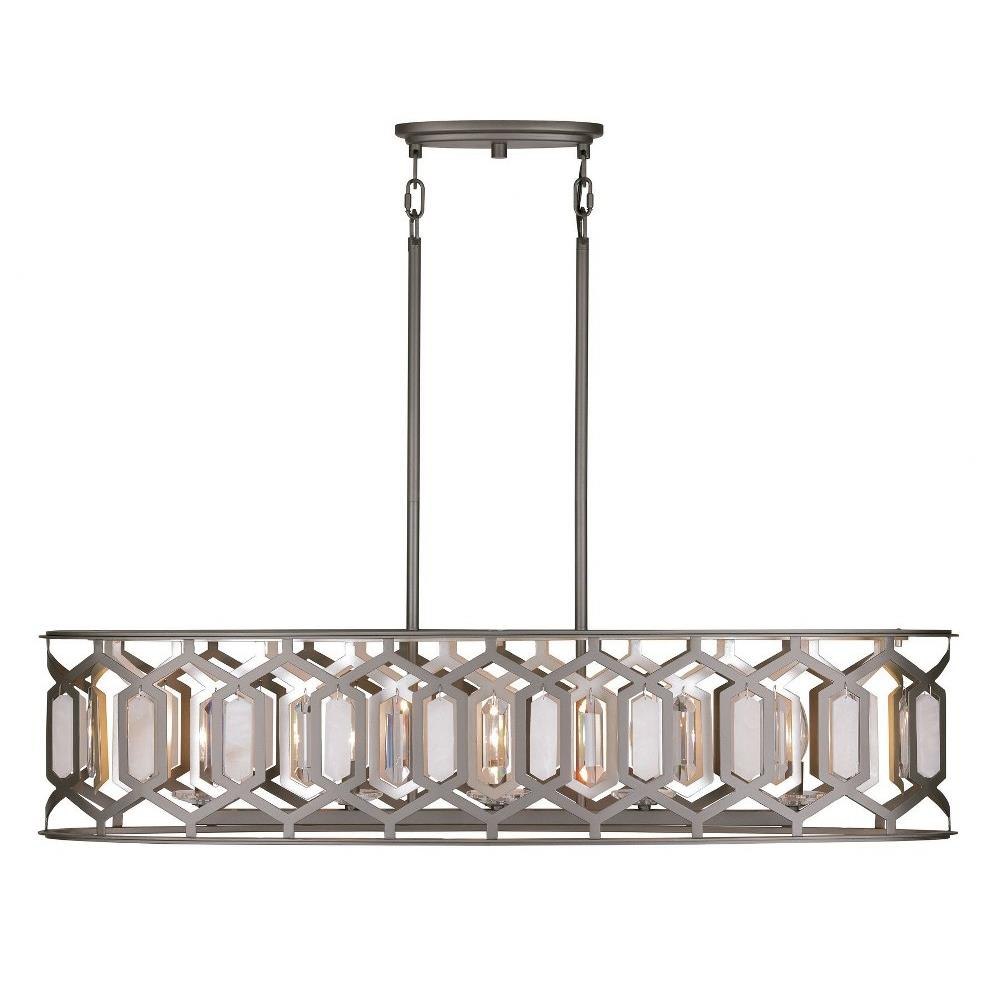 Introducing the Hexly 5 Light Island Pendant, a stunning addition to your space that combines elegance and functionality. Standing at 10.13 inches tall and spanning 44 inches wide, this piece features a beautiful blend of alabaster, crystal, and steel materials. Designed to accommodate five incandescent bulbs, it offers ample illumination while enhancing your decor. The Hexly collection showcases a modern aesthetic that effortlessly elevates any kitchen or dining area.