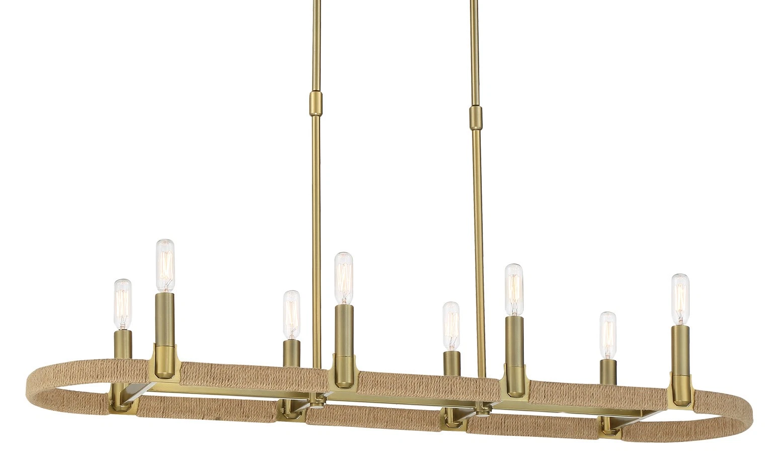 Minka Lavery 3868 Windward Passage 8 Light 41" Wide Linear Chandelier with Natural Rope Shade. This beautiful tropical location of theWindward Passage inspires the creation of this collection. Soft brass and coal finish with natural rope shade.