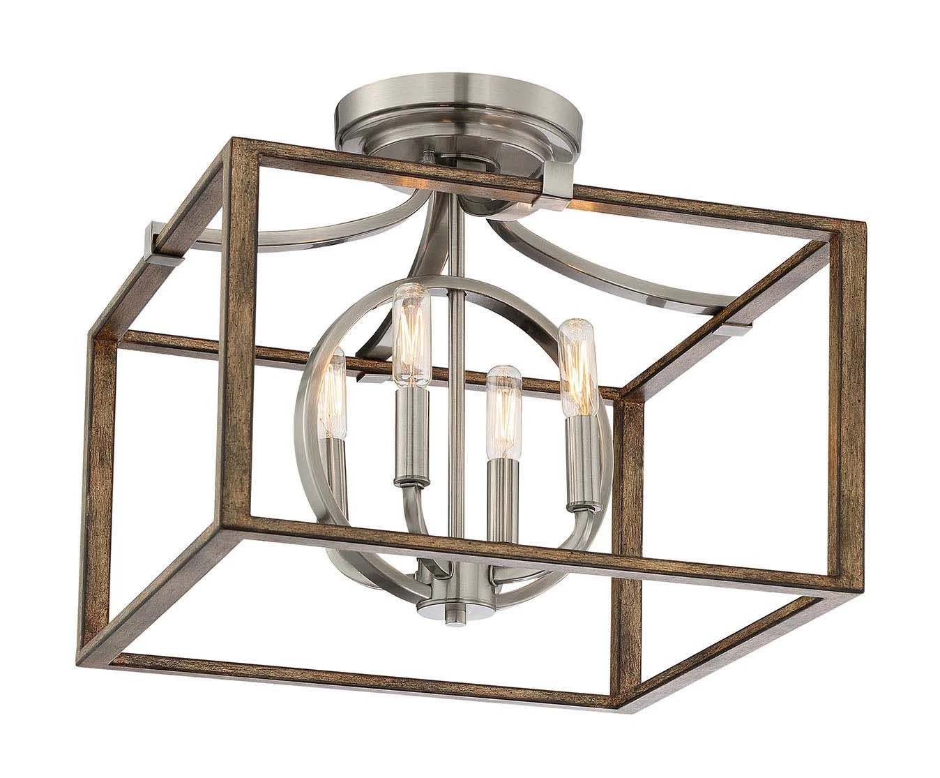 Minka Lavery 4013 Country Estates 4 Light 17" Wide Semi-Flush Square Ceiling Fixture. Covered under Minka Lavery's 1 year manufacturer warranty. Rustic modern farmhouse style radiates from the earth-tone Sun Faded Wood finish.