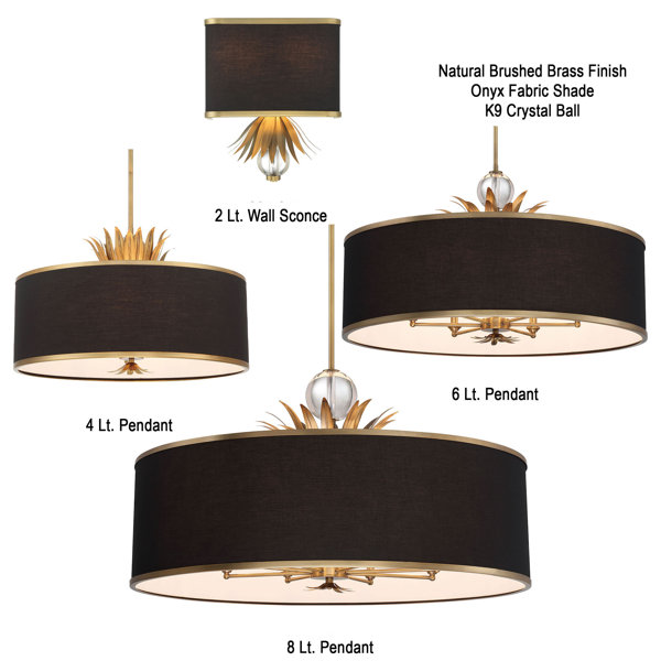 Illuminate your kitchen with the timeless elegance of the Rosdorf Park Kiarra 3 Light Pendant This majestic lighting fixture, with its industrial and rustic design, is perfect for hanging over your kitchen island Crafted with meticulous attention to detail, the Kiarra Collection features a Natural Brushed Brass finish and an Onyx Fabric Shade that exudes sophistication The Clear Glass Orb accent and curved floral petals create a mesmerizing focal point, beautifully enhancing the overall ambiance This pendant light not only exudes timeless beauty but also offers exceptional functionality The carefully designed construction ensures a balanced and even distribution of light, creating a soft, inviting atmosphere The adjustable down rod allows for customizable installation, making it suitable for spaces of various heights Transform your space into a haven of sophistication and grace with the Kiarra Collection by Rosdorf Park