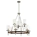 We purchased four of the Minka-Lavery ’Bridlewood’ collection fixtures: semi-flush for foyer, 9-light over our stairs, 5-light over our kitchen island, and this 6-light fixture for over our kitchen table. All arrived packed very well, nothing broken or missing. The fixtures are beautiful and very good quality. My husband was able to assemble and install them all himself. I love the combination of a weathered wood-look (actually metal), the seeded glass, and the polished nickel. It all comes together really well for a modern yet traditional look. Very pleased and happy to be rid of the basic builder’s fixtures that had been in our house for over six years! These add so much style and beauty.