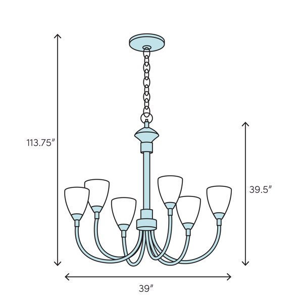 Specifications - Uses twelve 60-watt A19, E26 medium bulbs (not included). Light Dimensions: 39w x 39l x 39.5h inches. Canopy Dimensions: 6w x 6l x .75h inches. Wire Length: 120 inches. Chain Length: 72 inches. Weight 33.33 lbs.