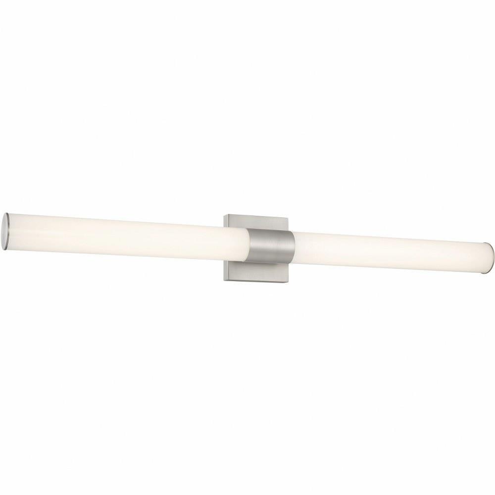 Introducing the Vantage collection's 30W 1 LED Bath Vanity, an elegant lighting solution designed to enhance your space. Standing 5 inches tall and spanning 36 inches wide, this fixture combines durable aluminum and steel construction for a modern touch. The energy-efficient LED lamping provides bright illumination while minimizing energy consumption. Perfect for updating your bathroom or vanity area, this wall light balances style and functionality seamlessly.