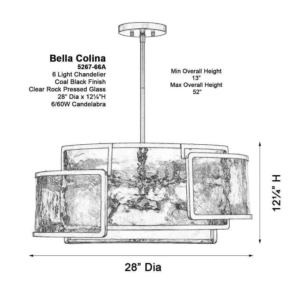 Introducing the Bella Collina 6 Light Pendant, a stunning addition to any space. Standing 12.25 inches tall and 28 inches wide, this elegant fixture features a harmonious blend of acrylic, crystal, and steel materials, ensuring both durability and sophistication. Designed for incandescent bulbs, it provides a warm and inviting glow. The Bella Collina collection beautifully balances style and functionality, making it a perfect centerpiece for your home.