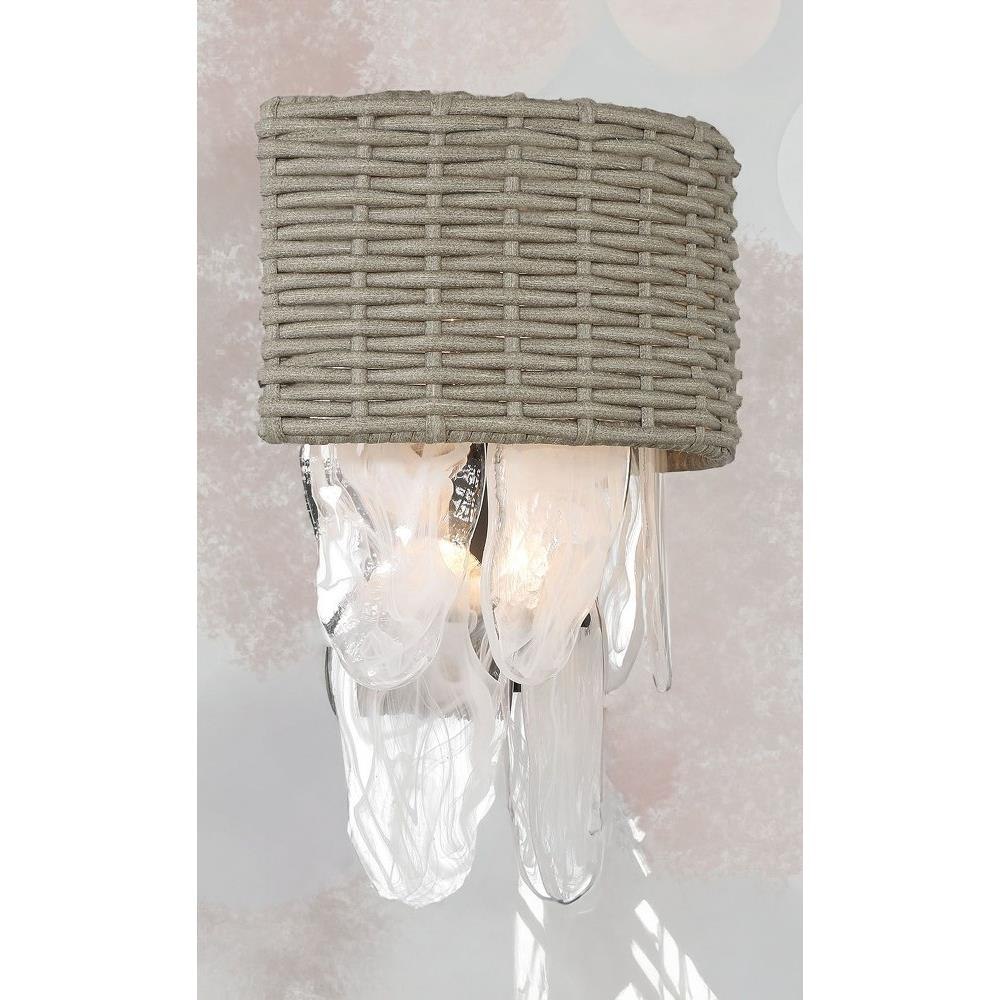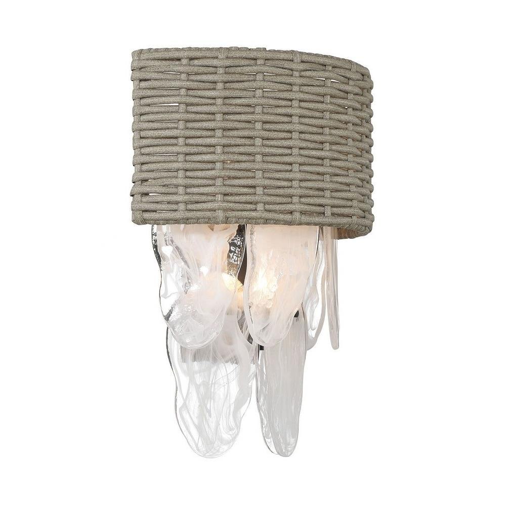 Introducing the Breakers Isle 4 Light Wall Sconce, a stunning addition to your space. Standing 18.75 inches tall and 16.38 inches wide, this elegant fixture features a harmonious blend of glass, rattan, and steel materials, ensuring durability and style. Designed for incandescent bulbs, it offers a warm and inviting glow, perfect for enhancing any room's ambiance. Elevate your décor with this exquisite wall light from the Breakers Isle collection, where functionality meets sophistication.